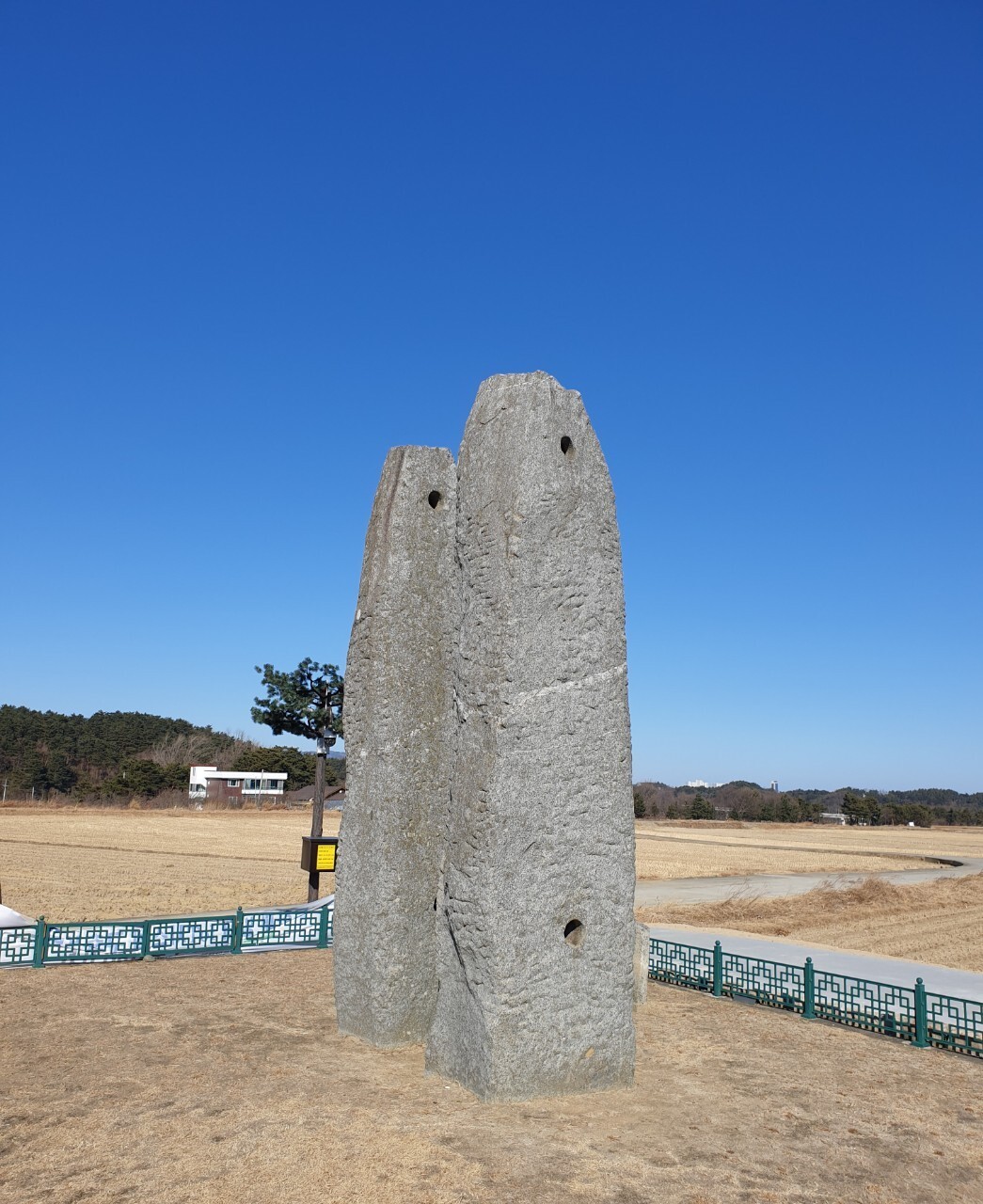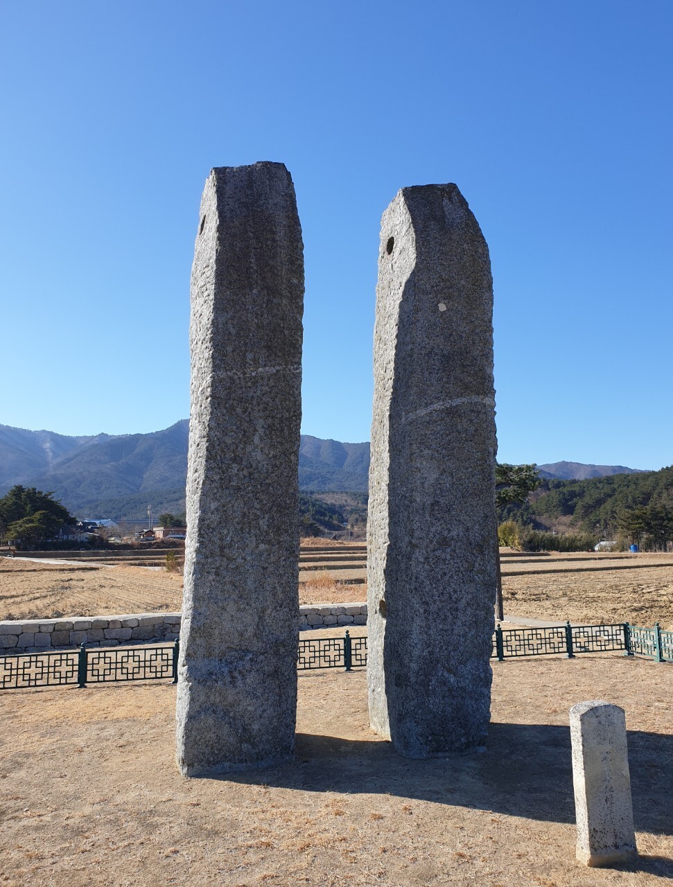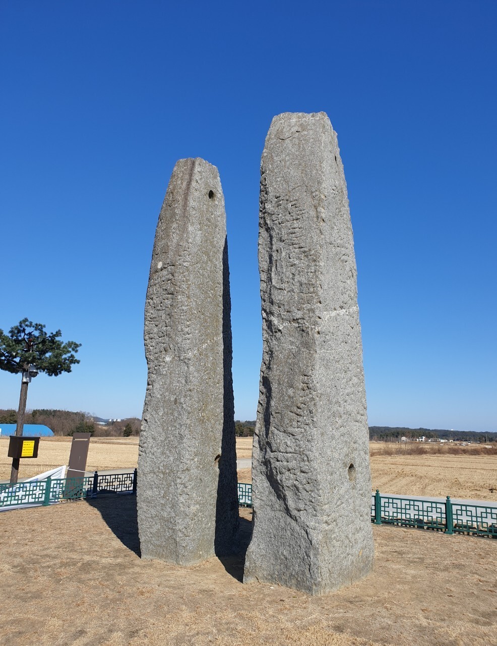 높이 5.4m. 우리나라에서 가장 규모가 큰 지주로, 양쪽의 지주를 각각 하나의 거대한 돌을 사용하여 조성하였다.