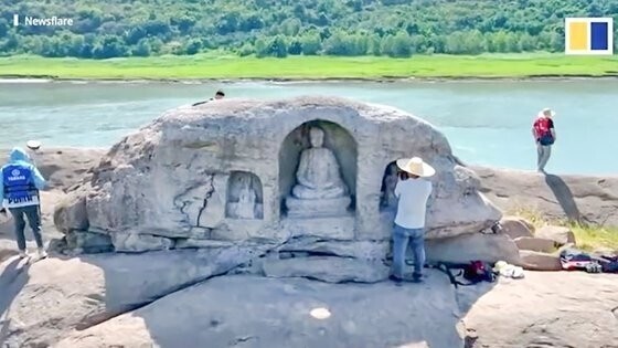 양쯔강 바닥서 600년 전 불상 드러나