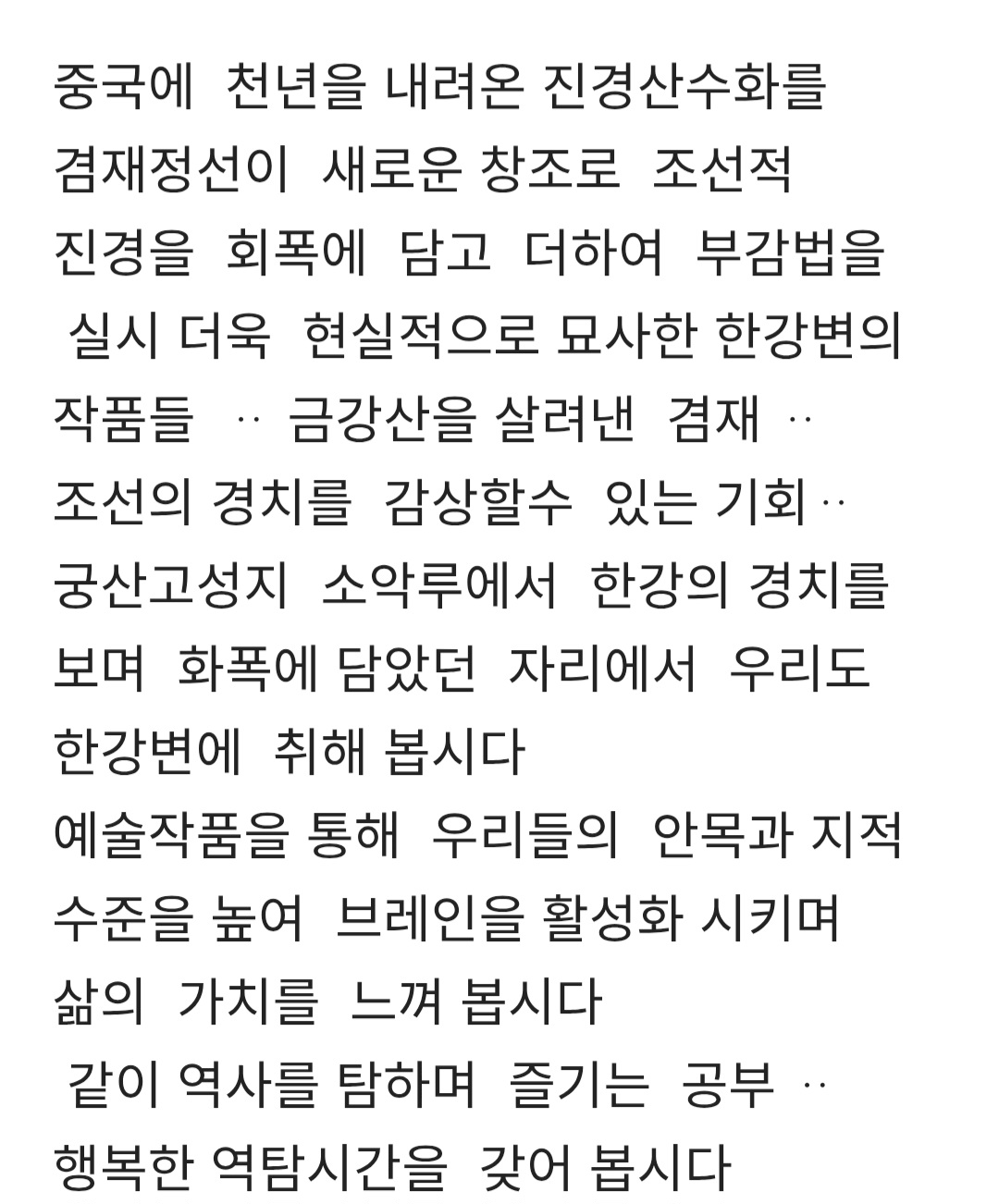 1한강전망대 2 궁산소악루3 겸재박물관을 탐하겠습니다 ᆢ조선 최고의 화가겸재정선 ᆢ 한강을 바라보며 한강에서 엮어지는 역사이야기 ᆢ 궁산소악루에서 조선의 선비들에 일상과 과거시험의