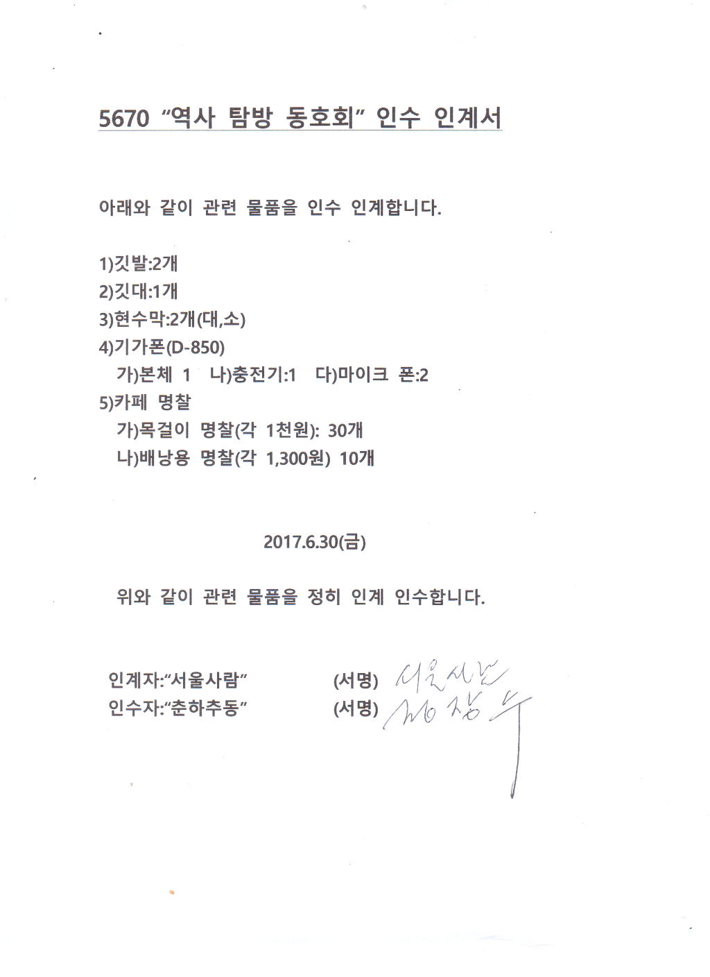 3. 역사 탐방 물품 인수 인계서(2017.6.30)