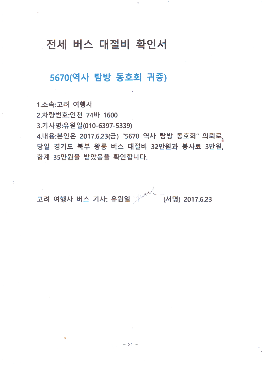 나)버스 대절비:350,000 ---- [첨부 2:확인서]