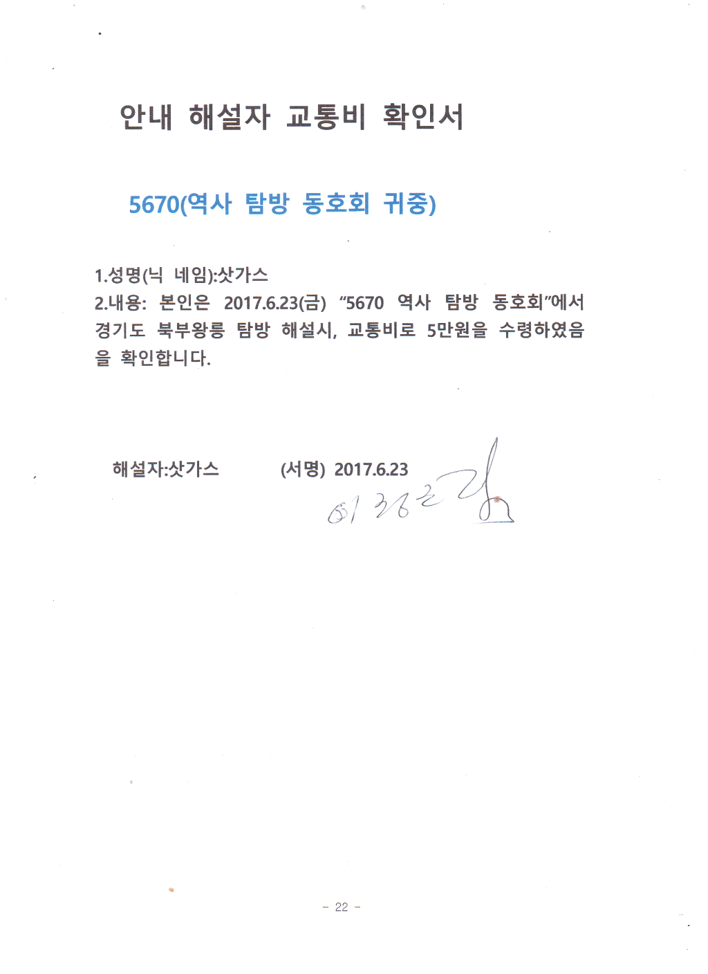 다)해설자 교통비:50,000---- [첨부 3:확인서]