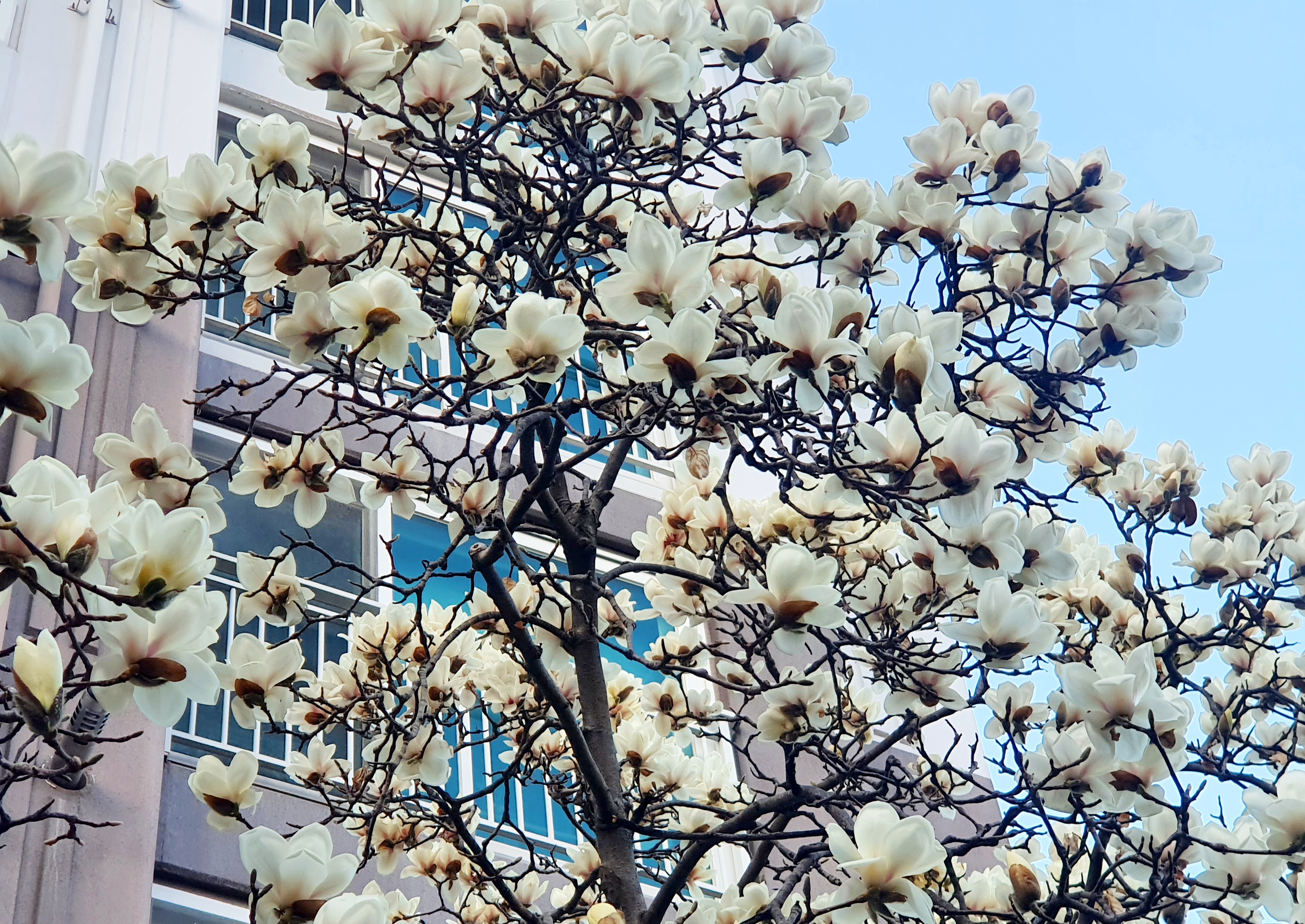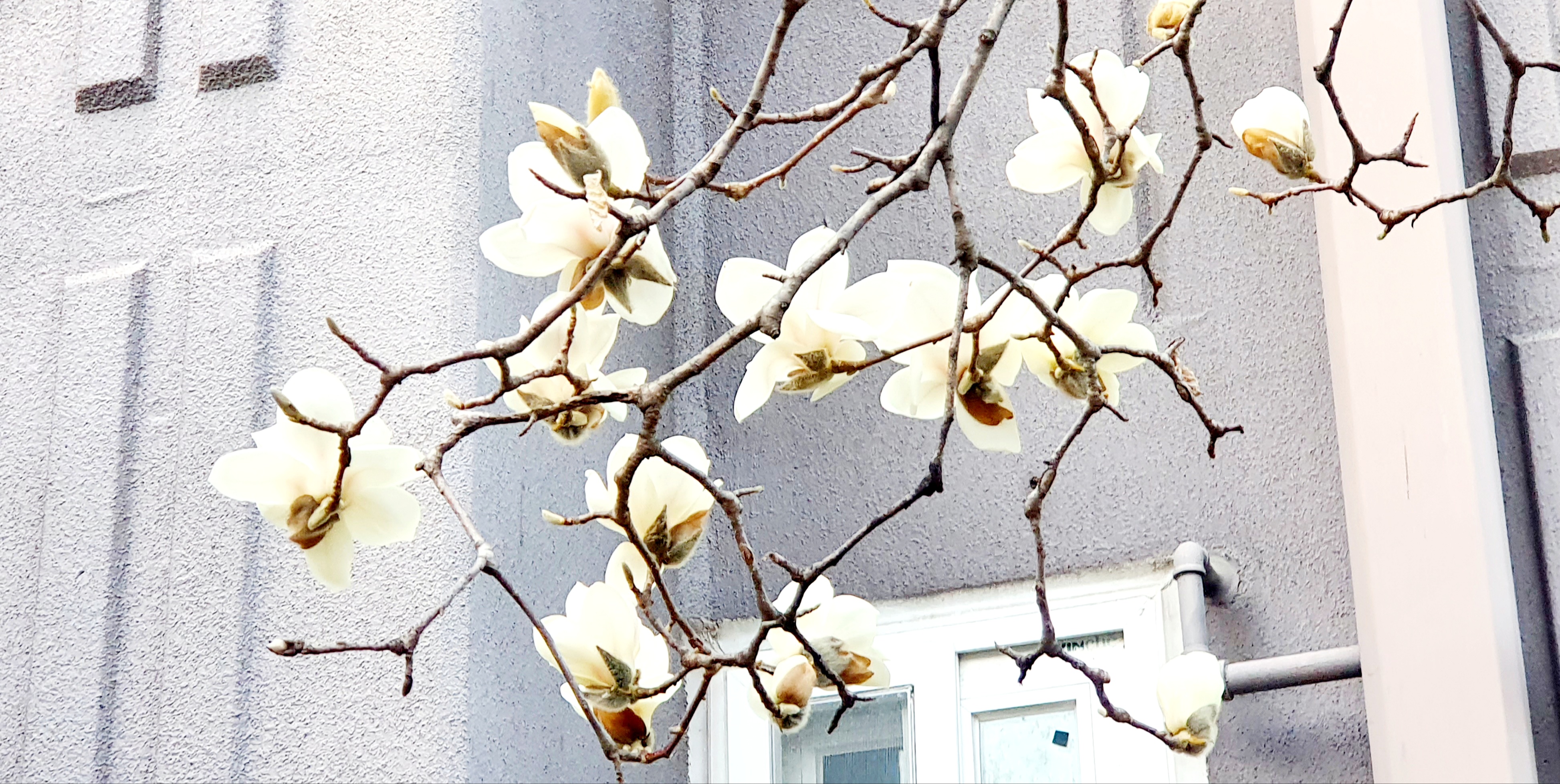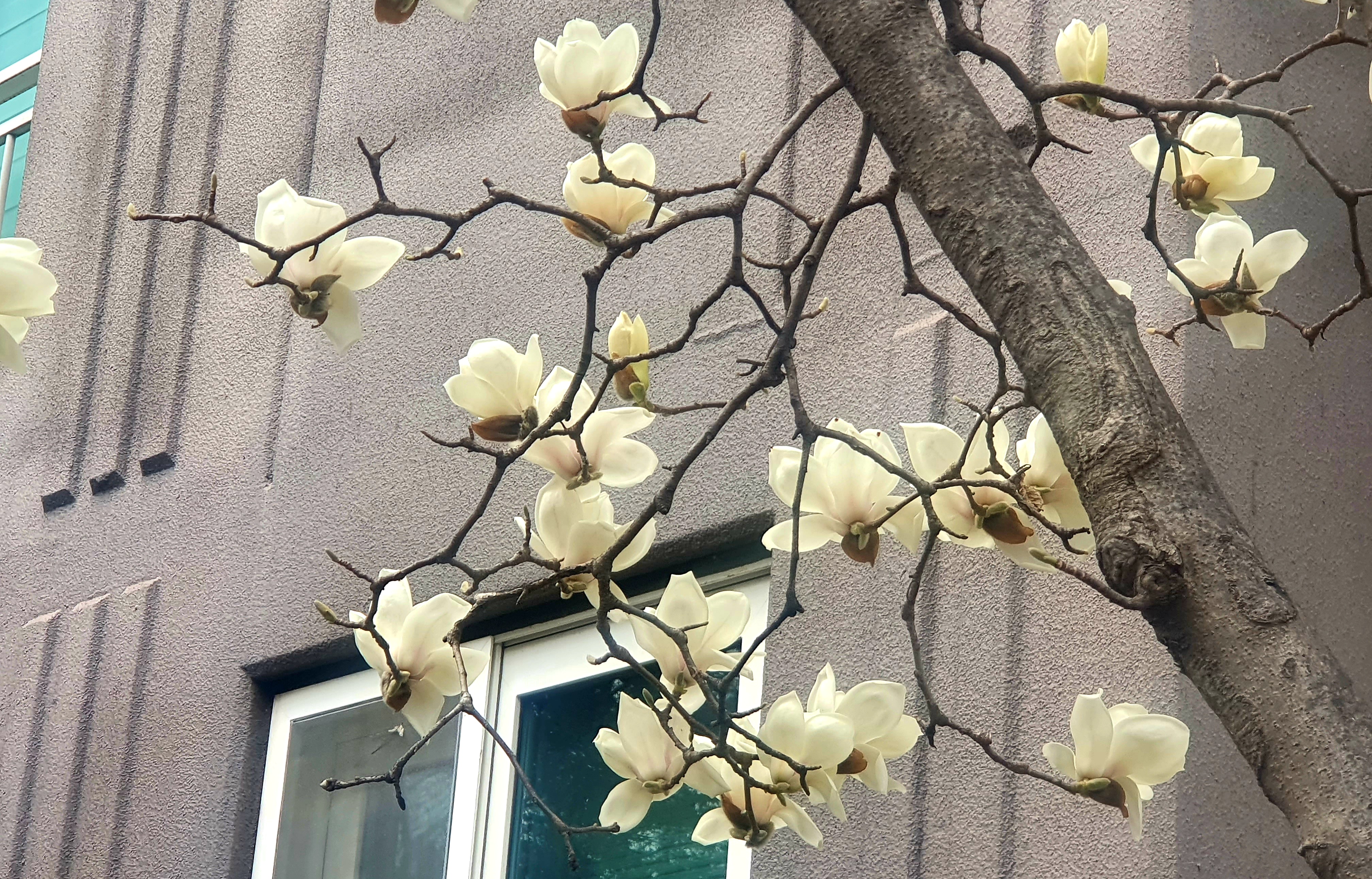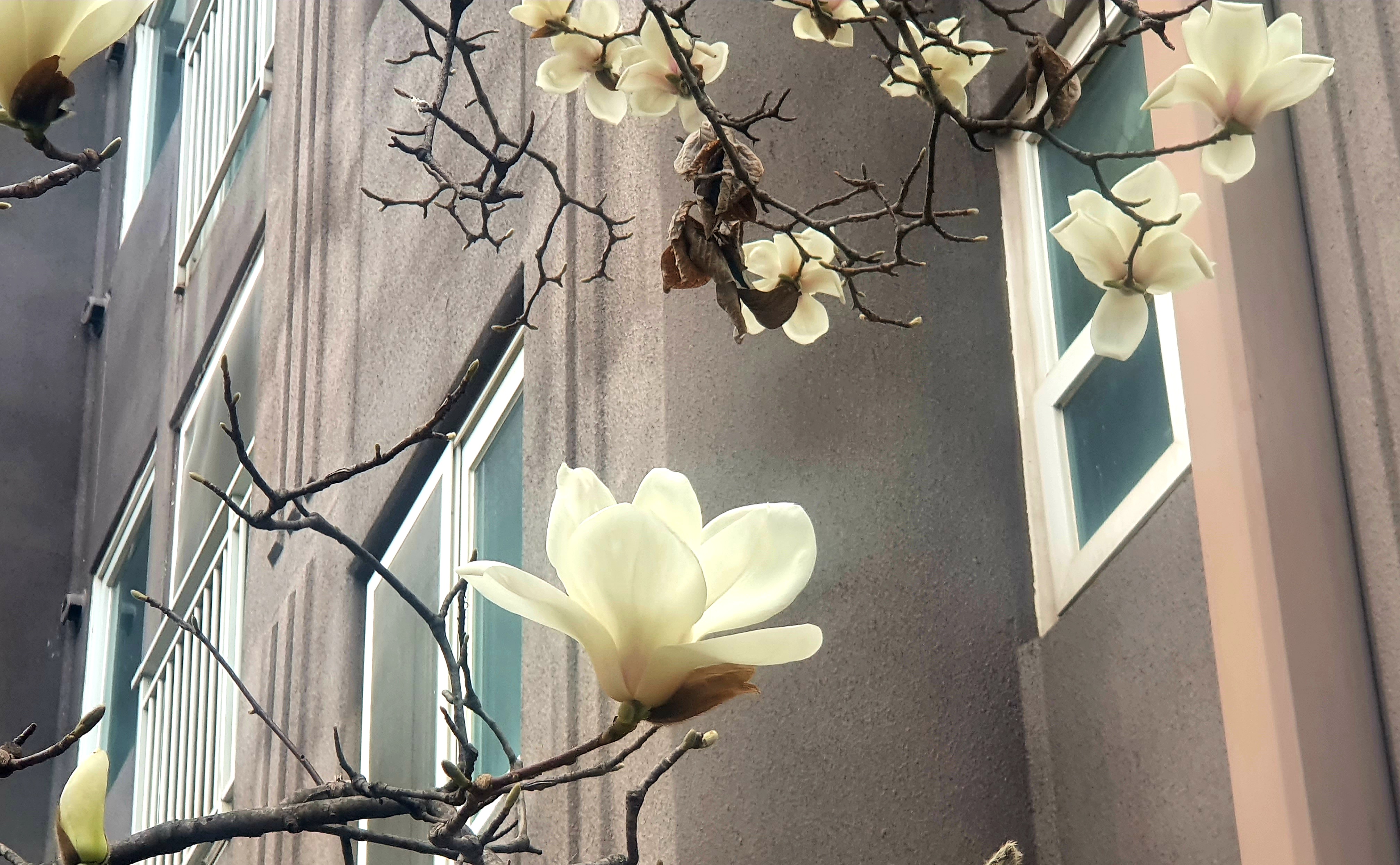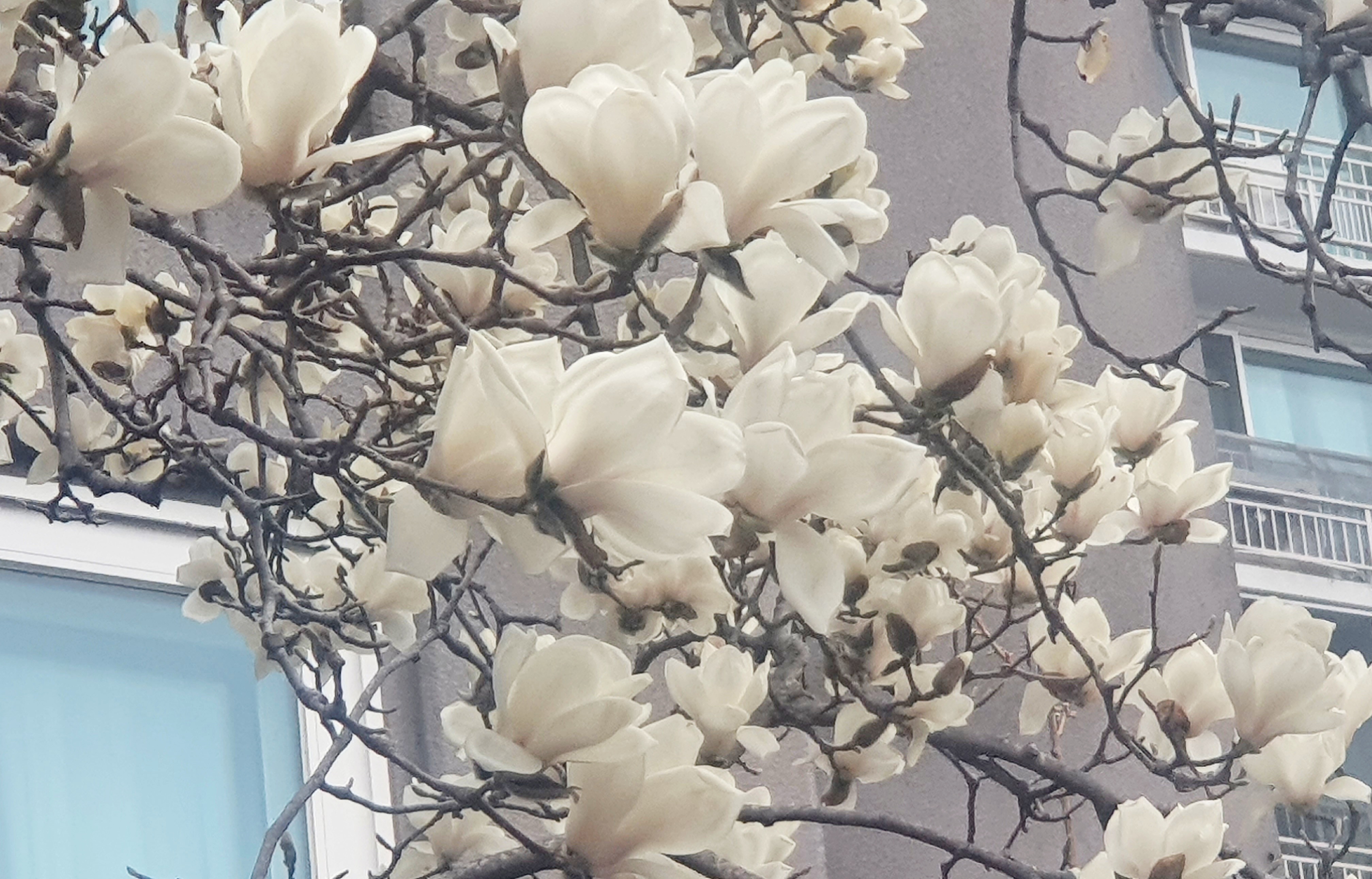 아파트 앞의 목련 꽃을 바라보며