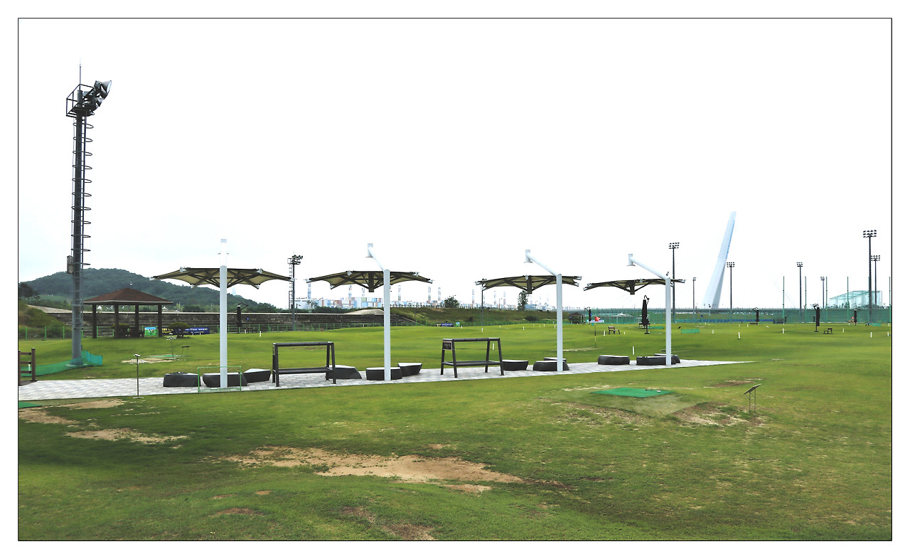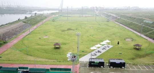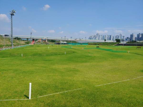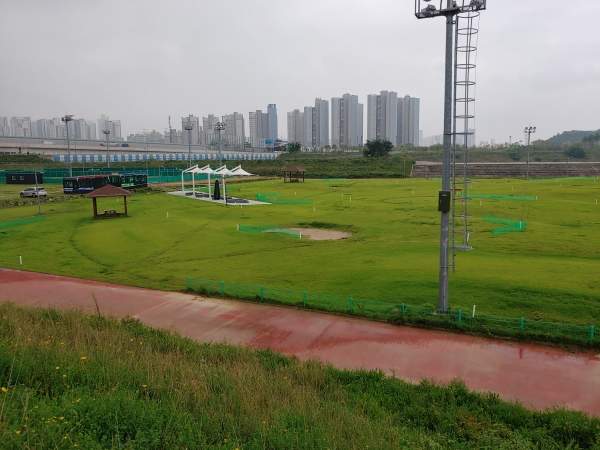 청라 파크골프장은 인천 서구 공촌유수지 체육시설에 위치하여 넓고 시야가 트여