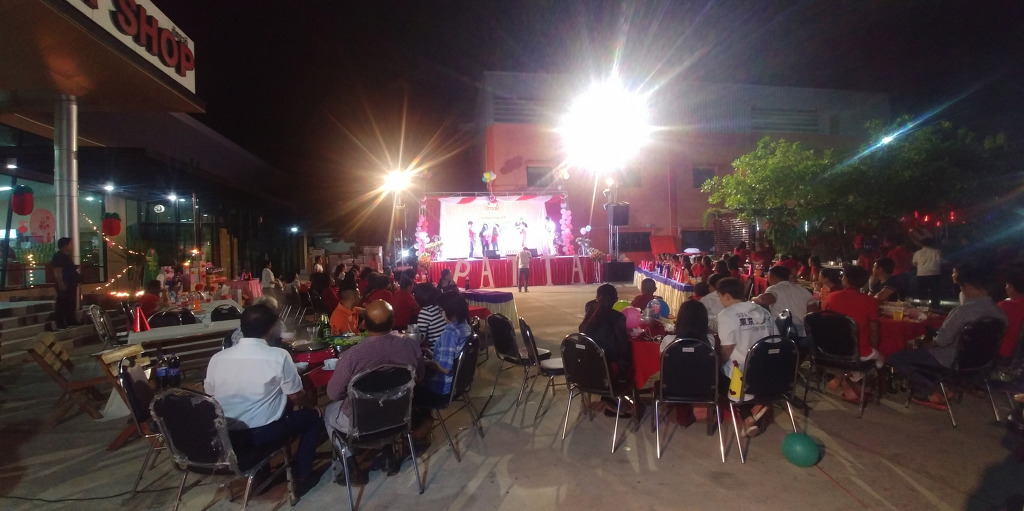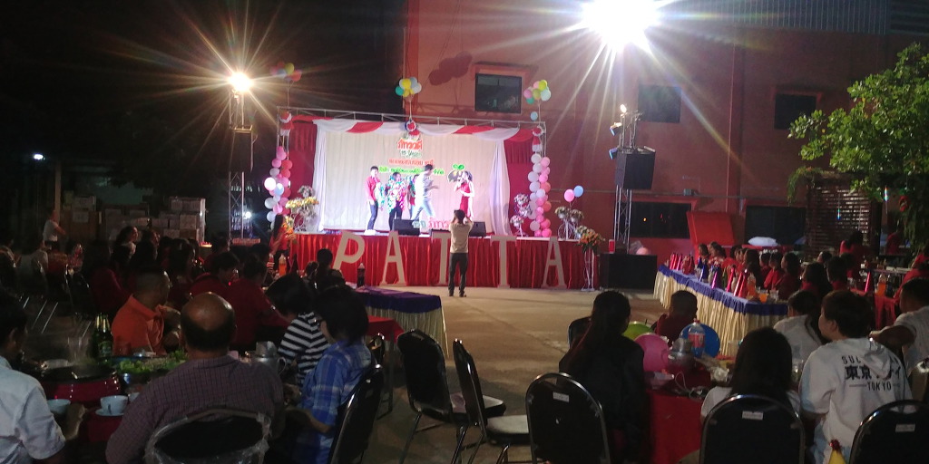 치앙마이로 돌아오는 길에 한 상점에서 직원들을 위한 파티가 열리네요.