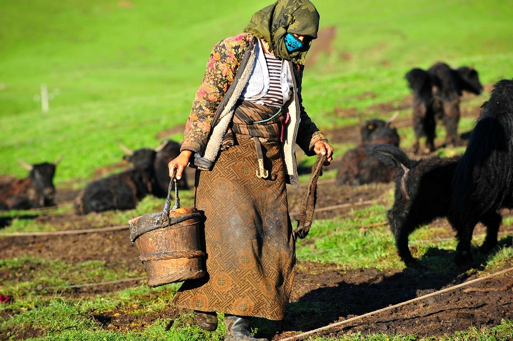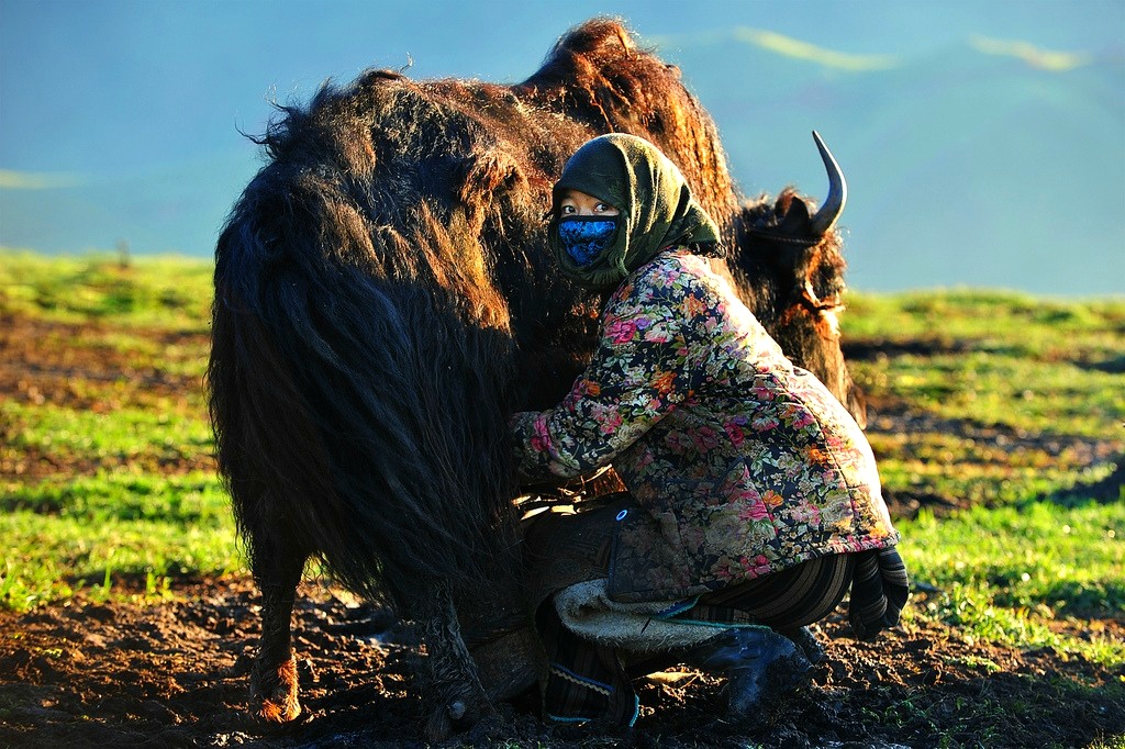 구체구 장족들은 대부분 야크와 염소등을 방목하며 산다.