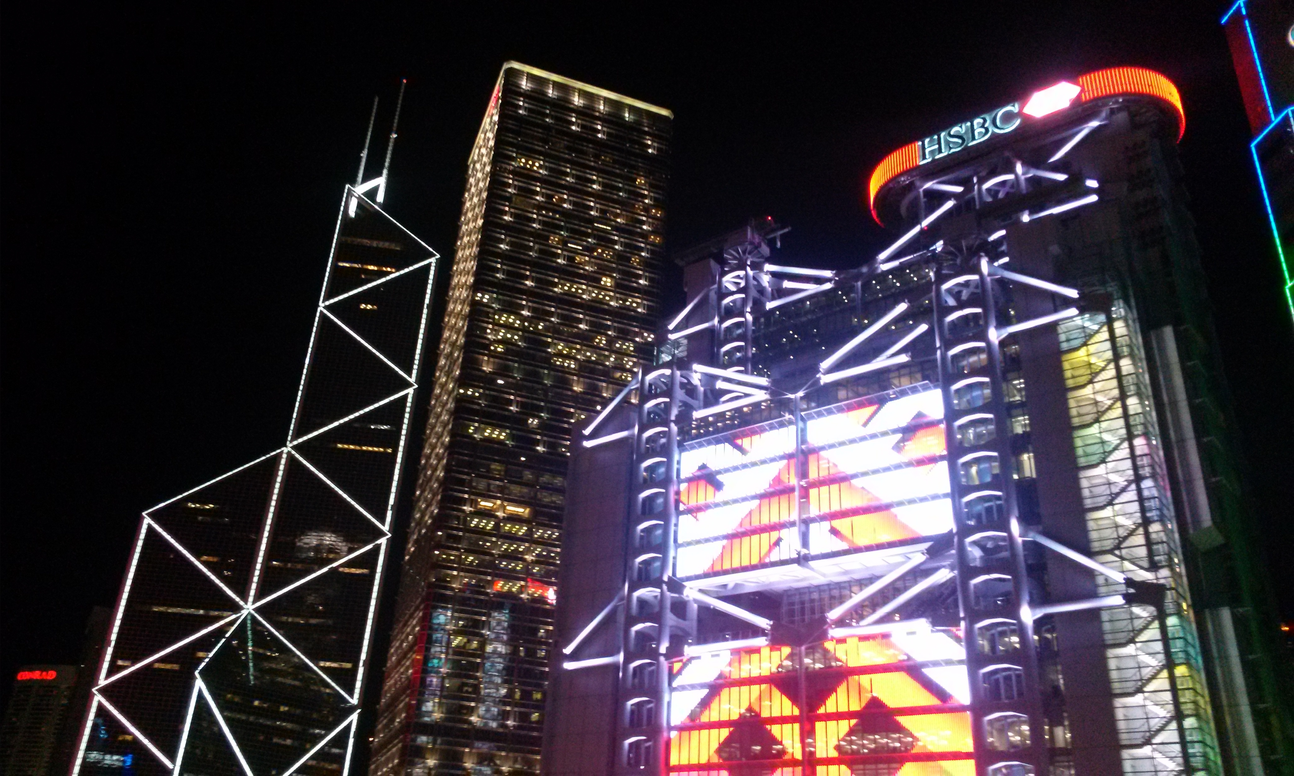 구룡반도 침사추이에서 바라본 홍콩섬 야경(완차이 .센트랄 지역.중국은행.HSBC.IFC빌딩.더센타 빌딩등)