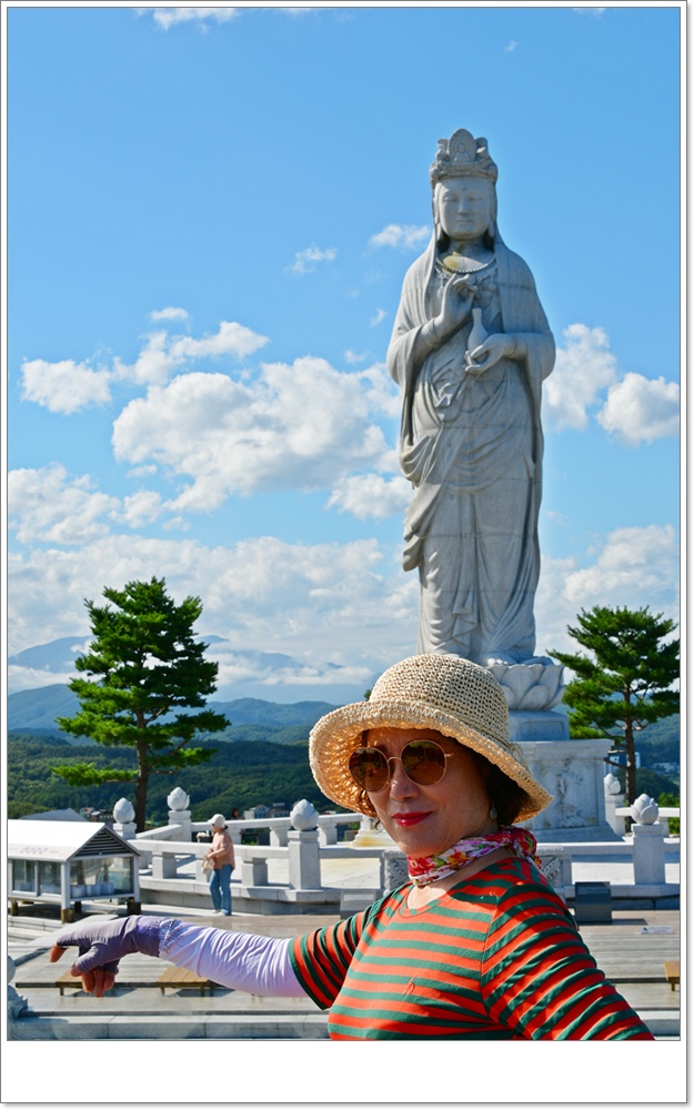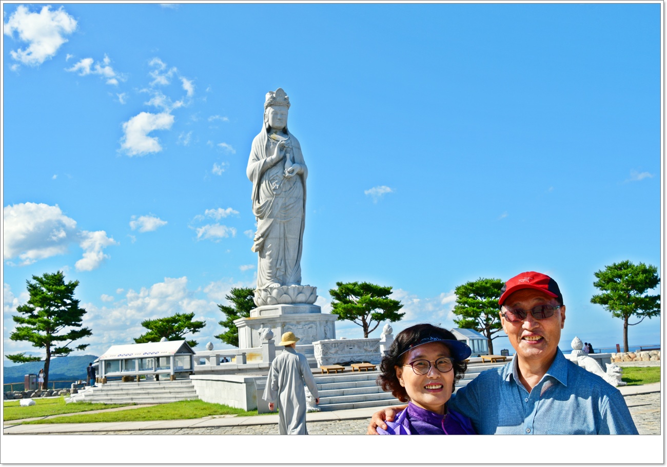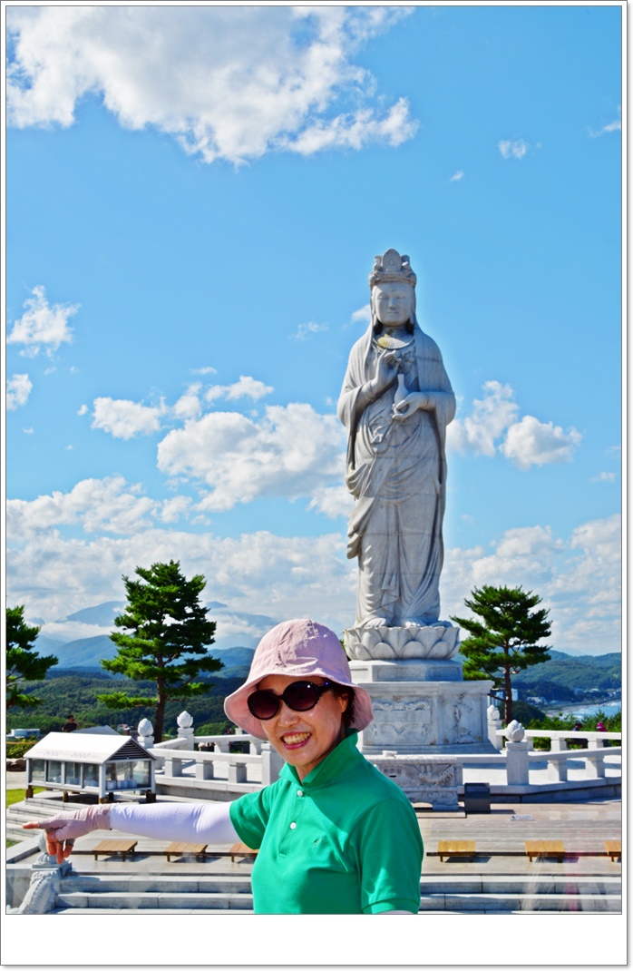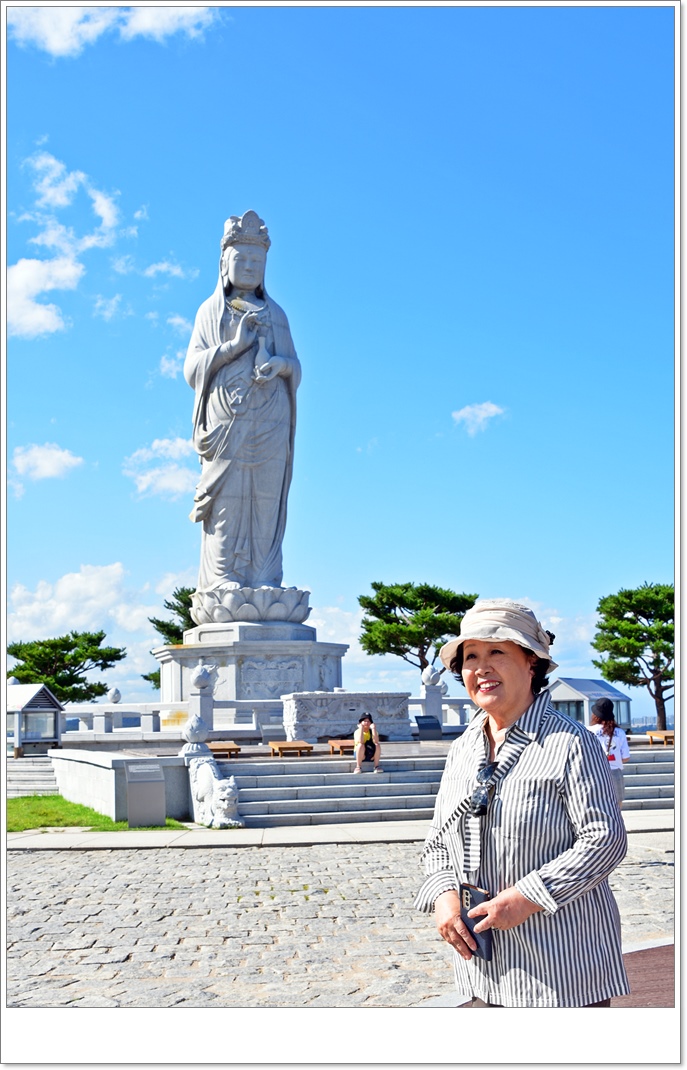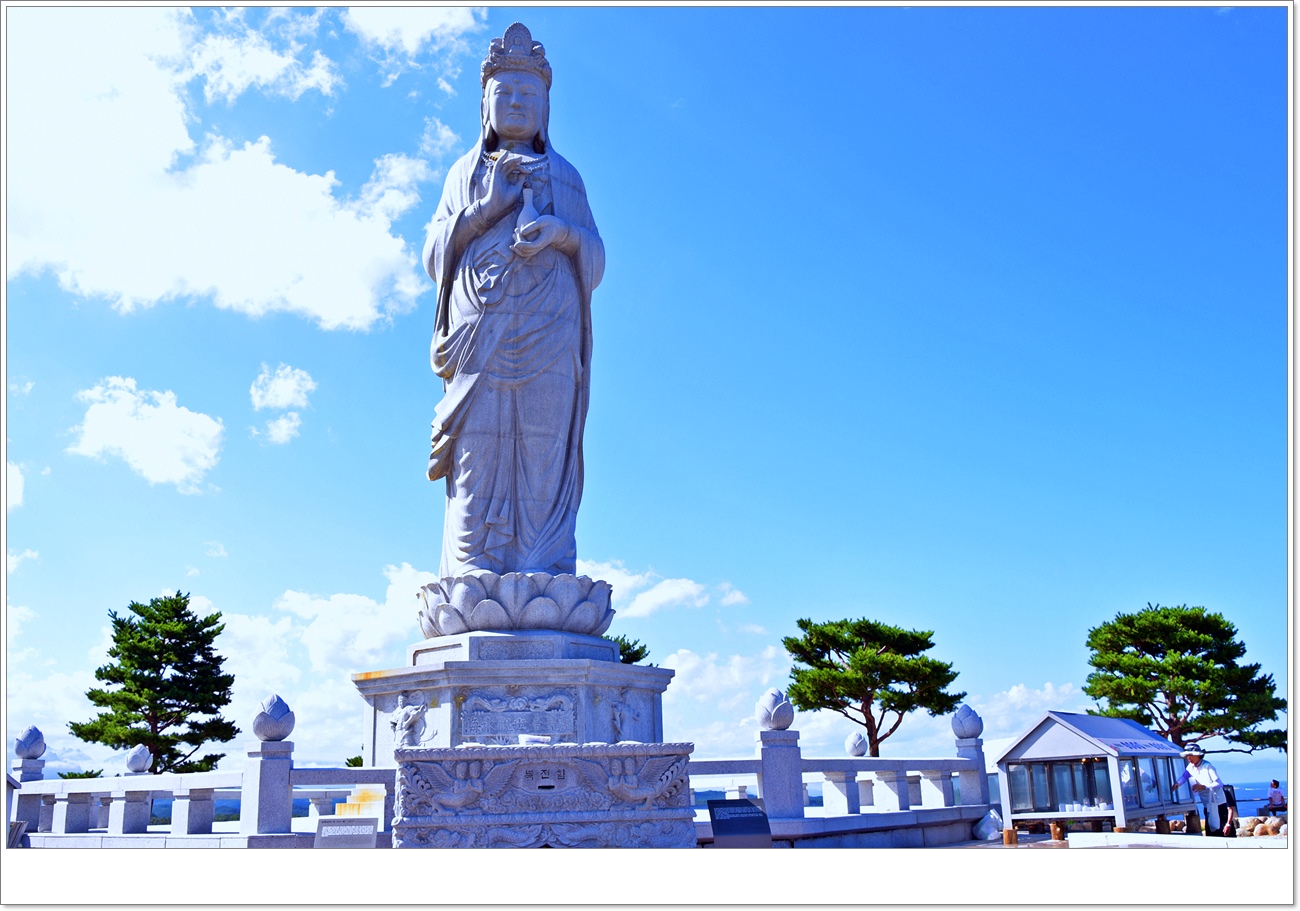 낙산사 의상대에 올라가니 푸른하늘에 흰구름이떠있고 주변 경치가 환상적이었지요.