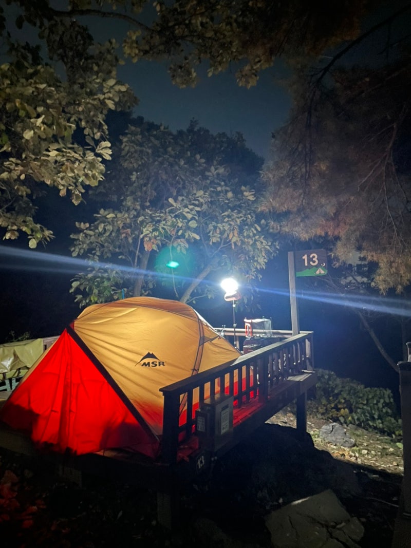 | 준비사항 | 4월부터 야외 캠핑장을 이용하기로 했기에 데크를 예약하겠습니다. 각자가 캠핑에 필요한 장비 일절 침낭 반찬류 한가지만 준비해 주시고 세면도구 등 준비해 주세요. 여성분은 침낭만 준비 하시면 됩니다 최종 먹거리며 부식 등 마트에서 총구입 합니다. 등산 준비도 해주심이 좋을듯 싶어요. | |