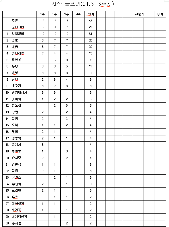 단,삶의 이야기방,자작시.수필방,속풀이수다방에 게시된 자작글은 별도로 카운트 함.