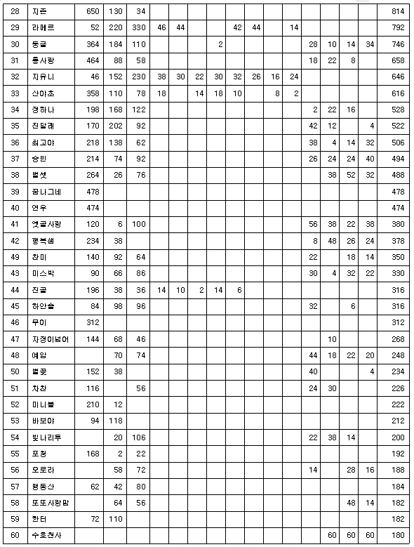솔 체 100,000 수정구슬 100,000 조은희 100,000 기 우 100,000