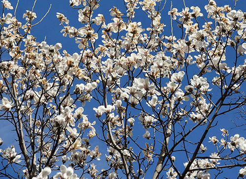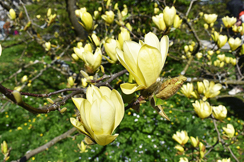 1. 우리 집에는 3가지의 목련이 있는데 백미(白眉; 유비가 등용한 자 중에서 눈썹이 흰자가 가장 뛰어났다는 고사에서 온말)인 기명목련은 가지가 위쪽으로만 자라는데 고의적삼의 속고름을 풀고 샛노란 자태를 들어내듯 하고,