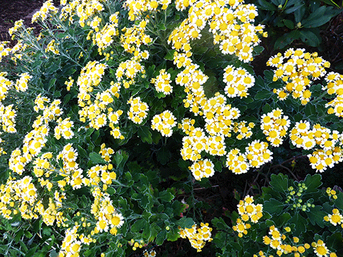 그중 여러 가지 순색의 국화는 백화들이 구가하는 좋은 계절은 마다하고 여름 내내 쌓아올린 힘으로 도도한 가을과 대적이라도 해보려는 양 햇살이 서서히 막을 내린 후 무서리가 내릴 때까지 서로 머리를 맞대며 경염(競艶; 여자들이 모여 서로 아름다움을 겨룸)이라도 하는 양 다투어 피어서 그들 나름 데로의 독특한 인내력을 여러 다른 꽃들에게 자랑하듯 하는데 백여 가지의 꽃들이 해마다 피고 진다..