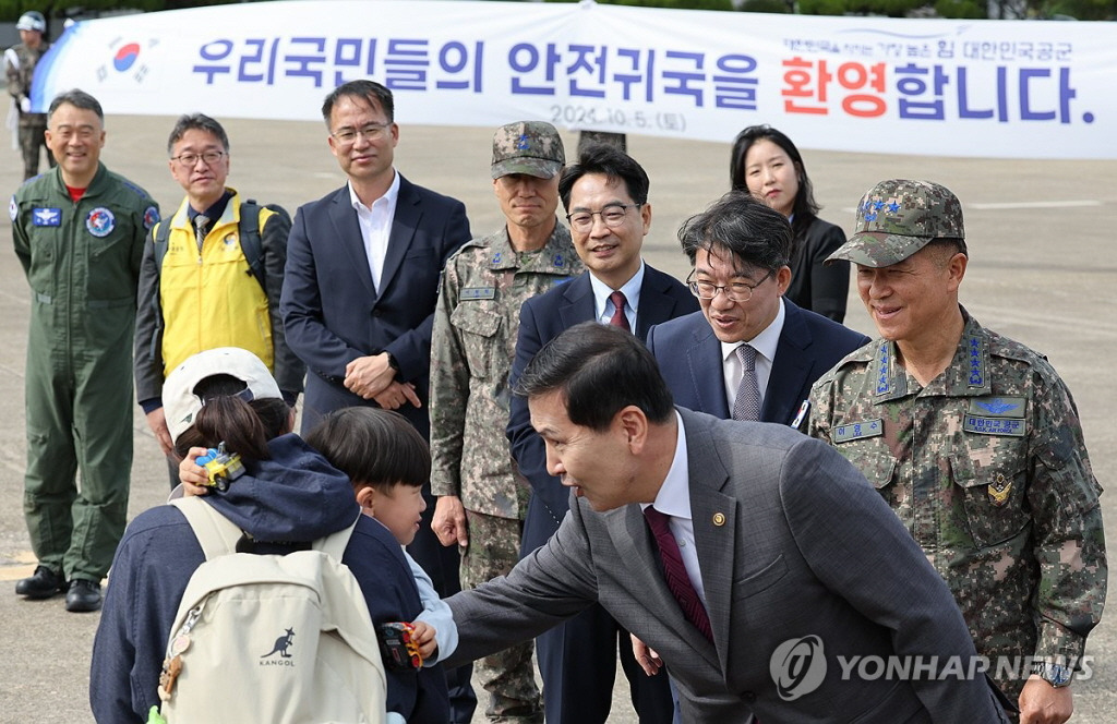 무사히 귀국한 교민 어린이와 대화하는 한 사람