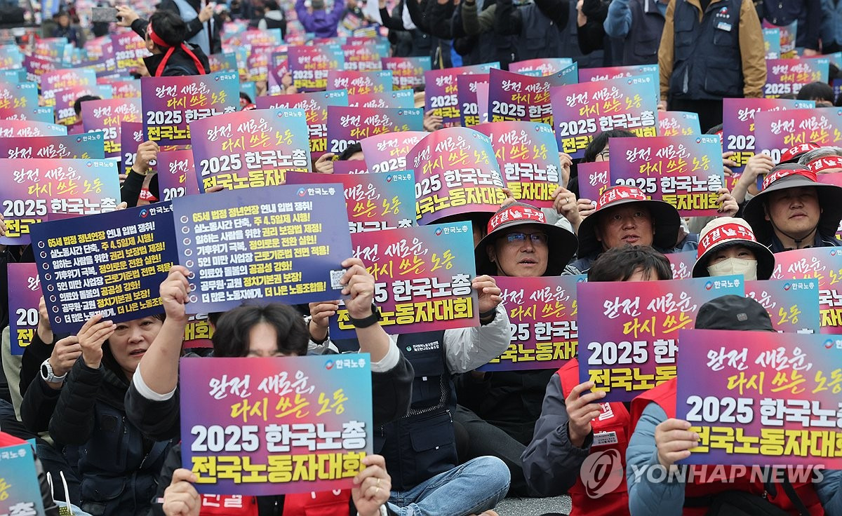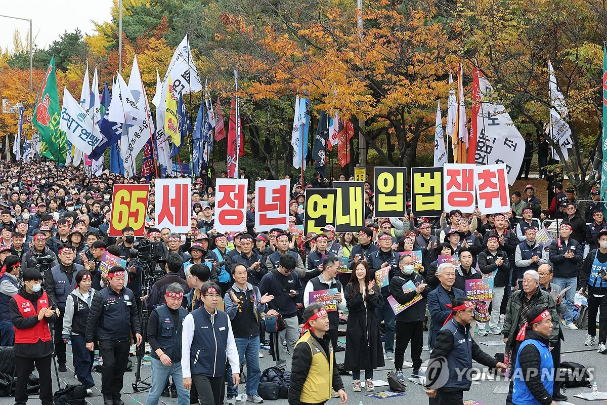 왼쪽에 들고있는 피켓을 보면 맨 위에 연내 65세 정년 합법 쟁취, 그 다음이 주 4.5일제 시행이다