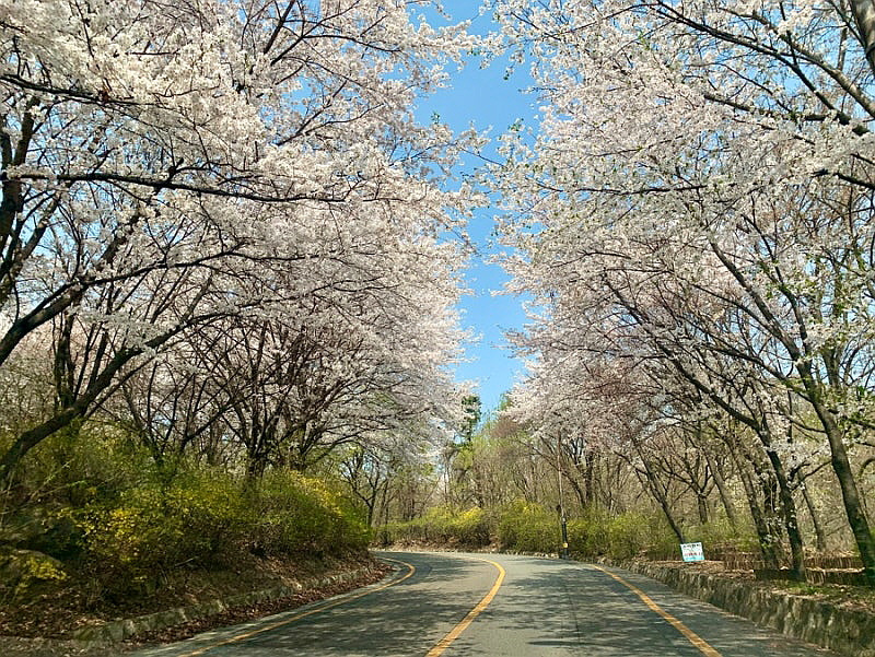 그런데 길 양쪽으로 벚꽃이 만개했다
