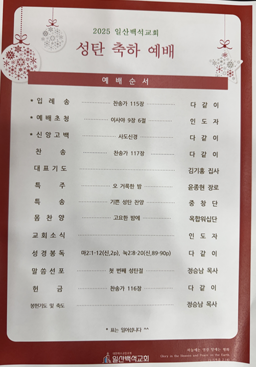 2025.12.25. 성탄축하예배 작성자백석2|작성시간25.12.26|조회수8 목록 댓글 0 글자크기 작게가 글자크기 크게가 다음검색 현재 게시글 추가 기능 열기 북마크 공유하기 신고 센터로 신고 댓글 댓글 0 댓글쓰기 답글쓰기 댓글 리스트