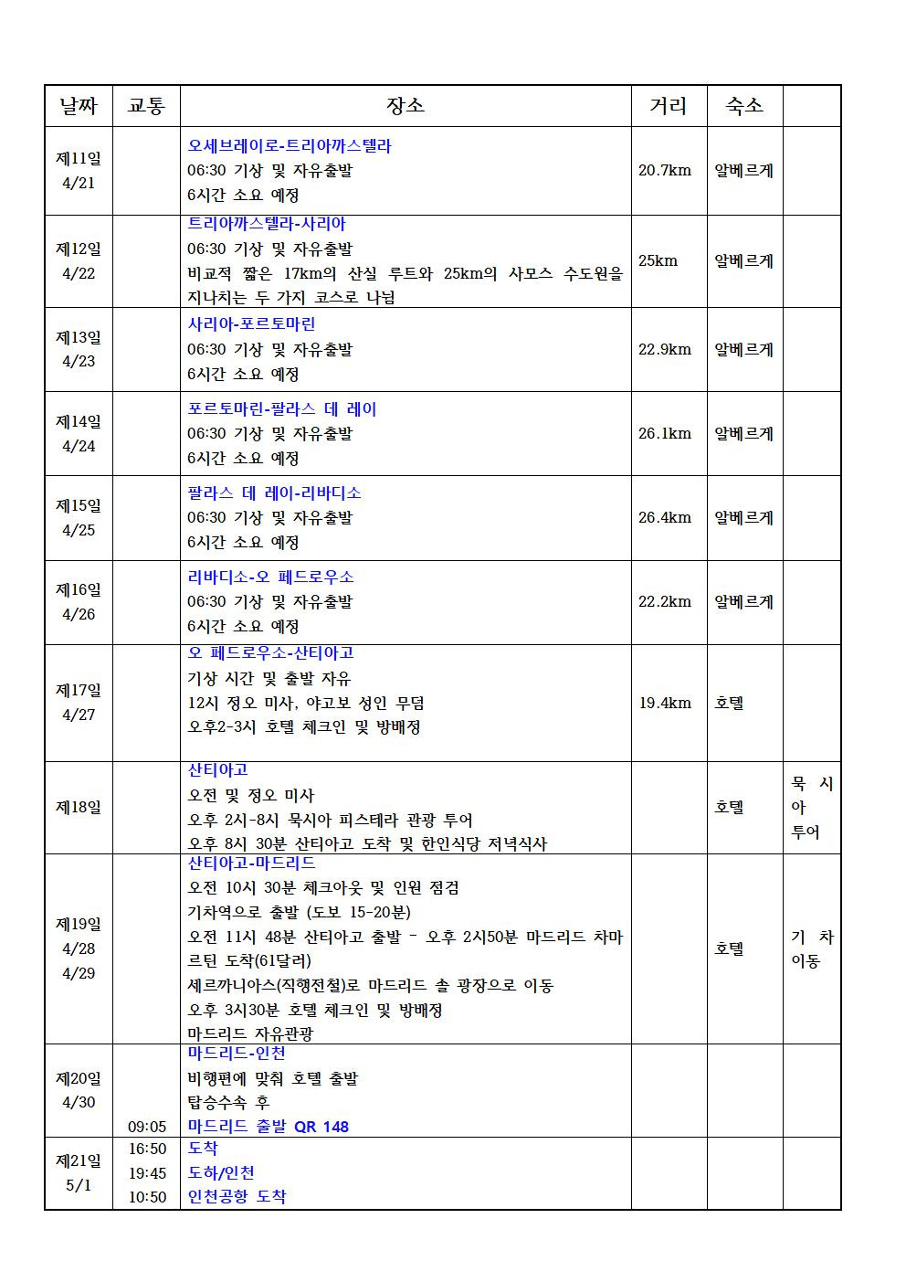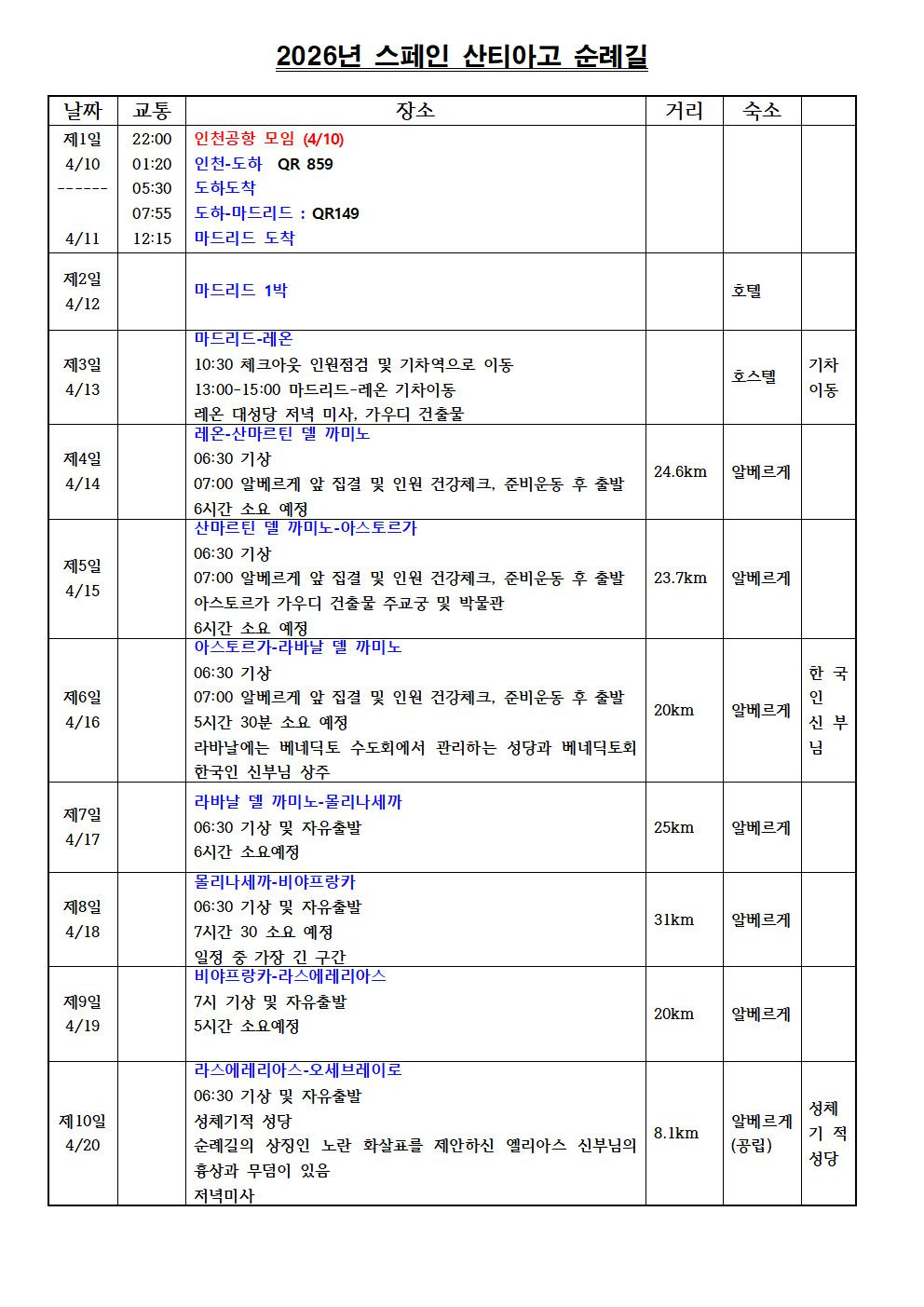 산티아고 순례길 2026년 4/11~5/1, 9월? 작성자삼위일체회|작성시간25.11.06|조회수190 목록 댓글 0 글자크기 작게가 글자크기 크게가 다음검색 현재 게시글 추가 기능 열기 북마크 공유하기 신고 센터로 신고 댓글 댓글 0 댓글쓰기 답글쓰기 댓글 리스트