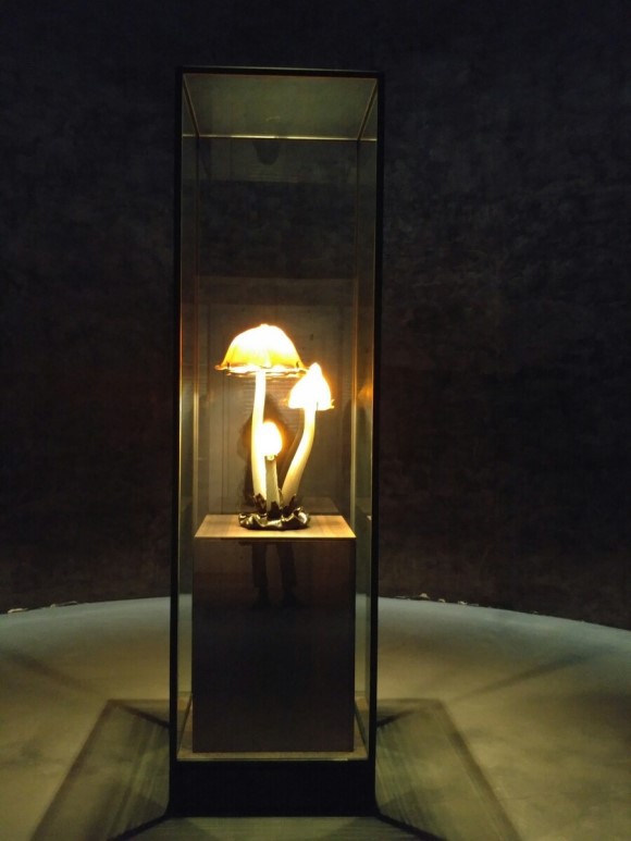 오기 전 나는 거기서 무엇을 기대했던가. 아는 게 없었으니 딱히 기대한 것도 없다. 그러나 ‘자연친화적’, ‘제주의 자연’이라는 설명과 미술관 사이의 공약수는 무언가 다른 것일 것 같았다. 만약, 그 공간의 핵심, 땅의 중심부에 이르러 다른 경험을 할 수 있었다면 처음의 내 불편함은 좀 바뀔 수 있었을까. 돌아와 이 글을 쓰려고 인터넷을 서핑하다가 지금처럼 <유민미술관>에서 유리 공예를 영구전시 하기 전에는 무슨 전시를 했을까 찾아보았다. 글의 모두에서 언급한 세 가지 명칭의 전시실에서 전시된 미디어 아트들의 사진과 동영상 그림을 보았다. 이런 그림과 전시들. 전시된 작품의 질적 예술적 가치는 내가 모르겠으나 분명하게 보이는 것 두 가지. 하나는 이전 전시에서는 이 공간의 내부와 전시된 작품이 “자연”과 “명상”이라는 주제로 통일되어 있다는 것, 다른 하나는 이 공간을 찾는 사람들이 공간 안에서 예술품 감상만이 아니라 스스로와 자연에 대한 “명상”의 시간을 가질 기회를 주는 동시에 그 과정에서 건축 공간이 자신의 존재 이유를 보여주고 있다는 것이었다.