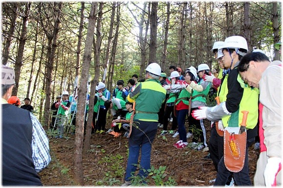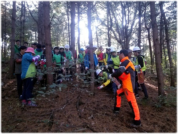 익산성일고, 전주한일고, 유일여고, 기전중. 오송중, 아중중, 용소중, 신흥중 학교 학생 50여명과 전북대학술림 선생님 14명이 참여하고, 전북생명의숲 사무국, 산림조합중앙회임업기능훈련원, 한솔산림기술사무서에서 진행을 맡았습니다.