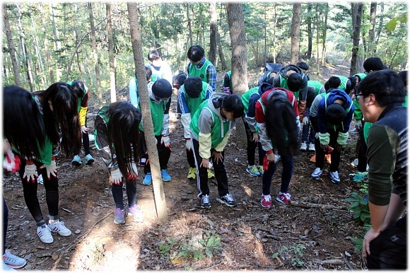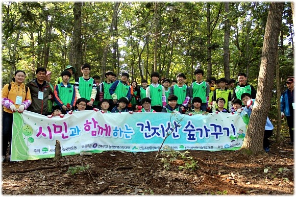 건지산에서 전라북도 내 중고등학생, 전북대학교 학술림 선생님들과