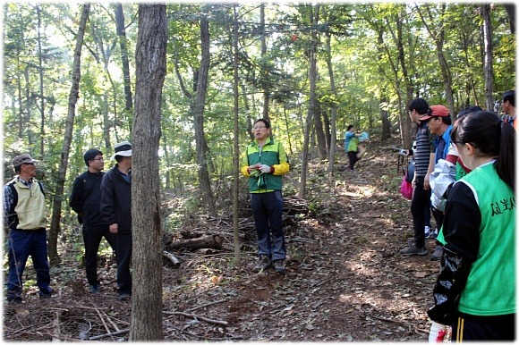 한솔산림기능사 선생님께서 숲가꾸기 의미와 필요성에 대해 이야기 해주셨습니다.