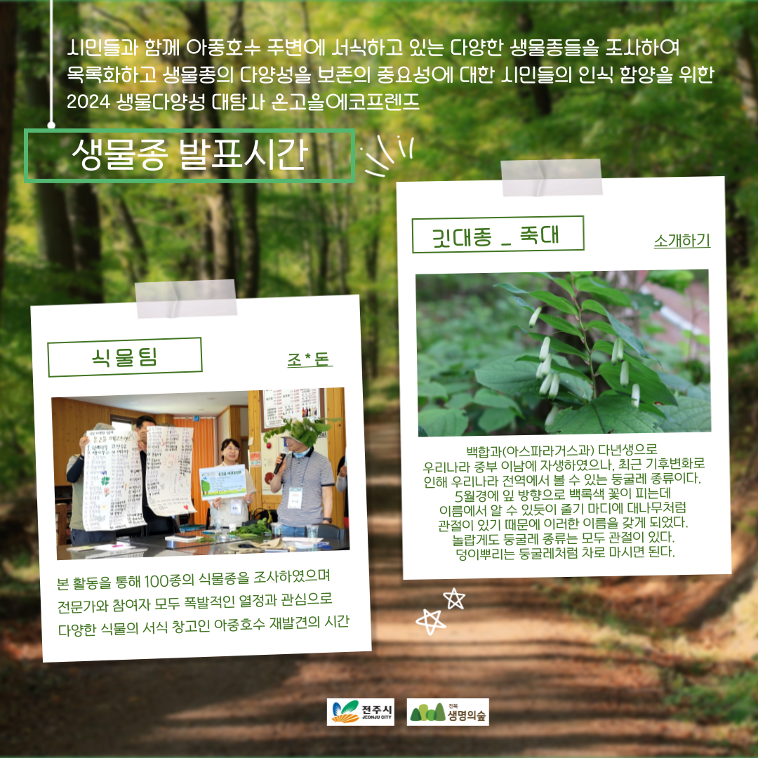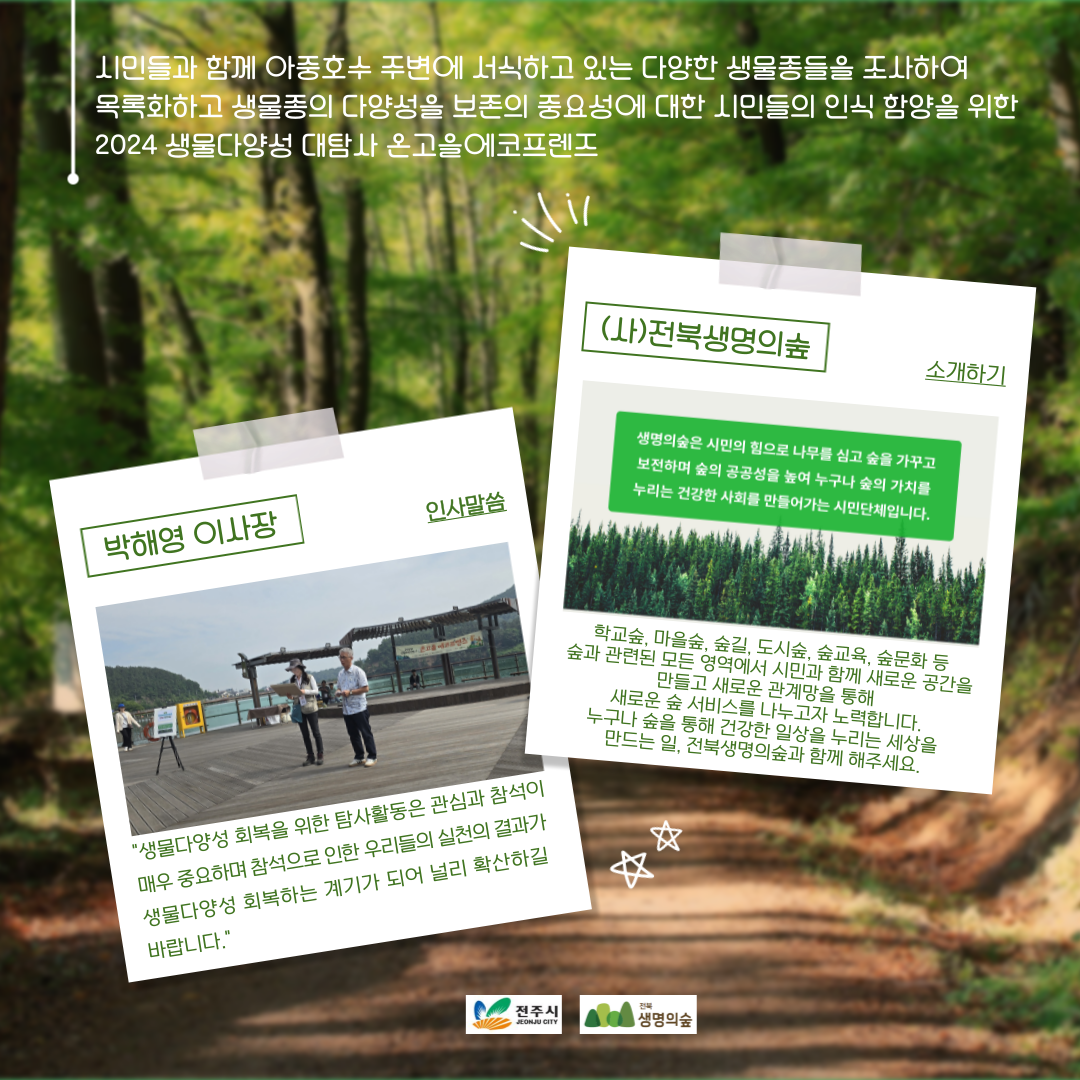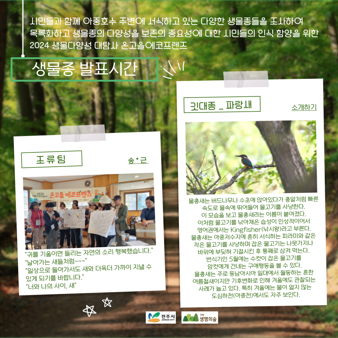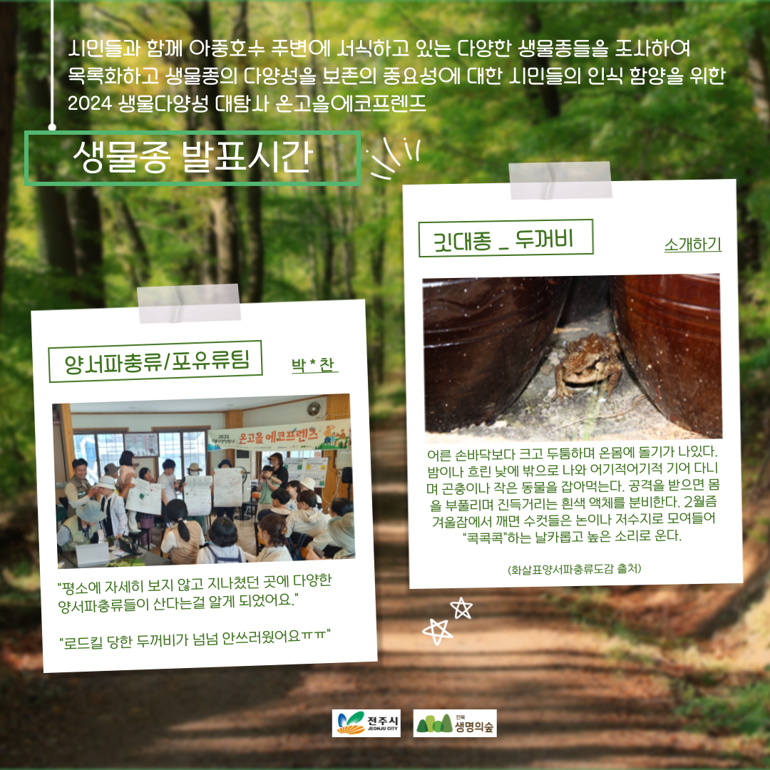 [2024.06.06] 2024생물다양성 대탐사 온고을에코프렌즈 활동후기 작성자관리자|작성시간24.06.08|조회수58 목록 댓글 0 글자크기 작게가 글자크기 크게가 다음검색 현재 게시글 추가 기능 열기 북마크 공유하기 신고 센터로 신고 댓글 댓글 0 댓글쓰기 답글쓰기 댓글 리스트