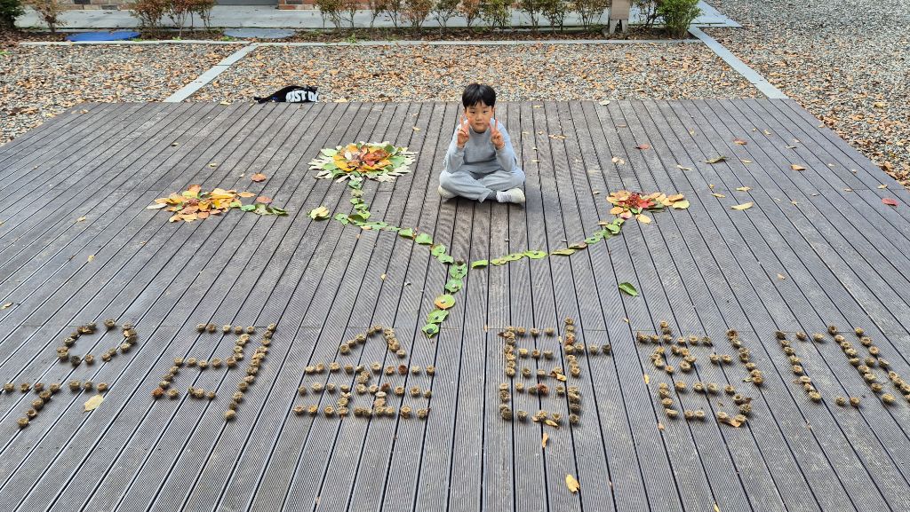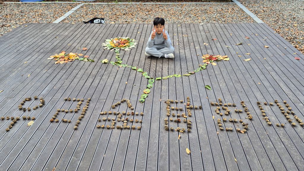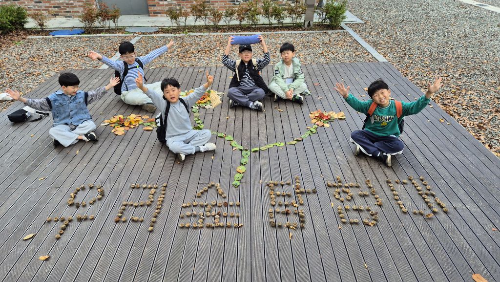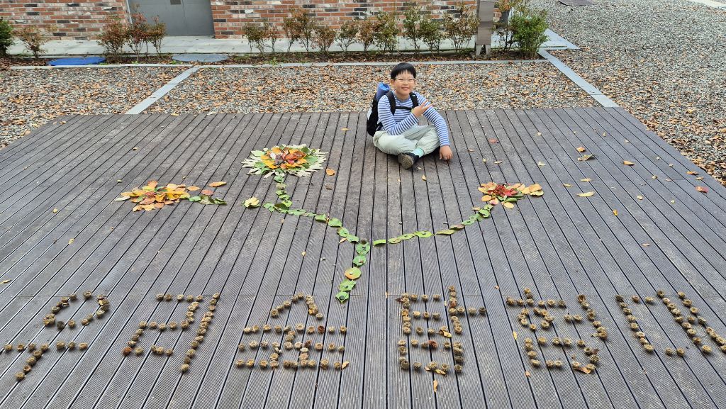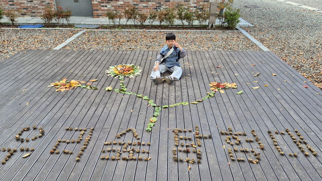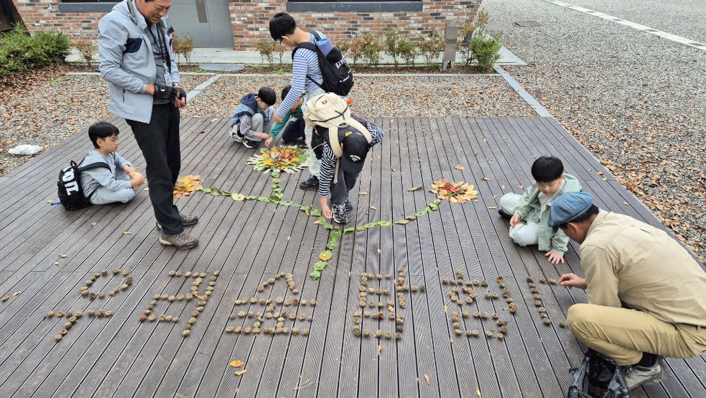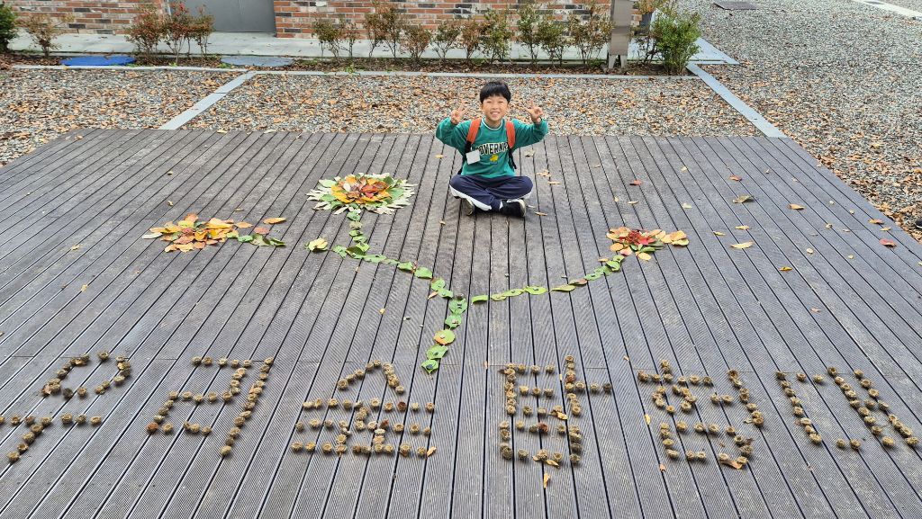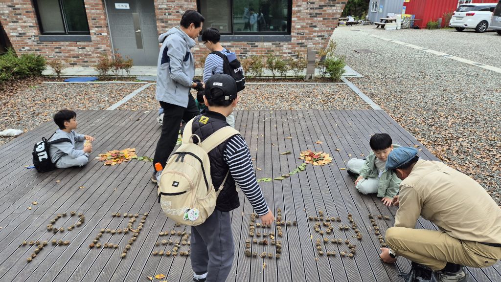 오후에는 낙엽으로 우리숲탐험대 글씨도 쓰고