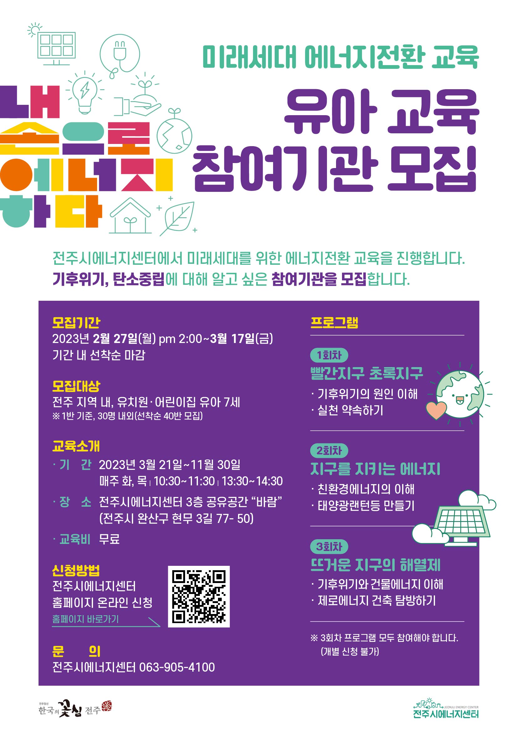 전주에너지센터에서 탄소중립을 위한 관심과 참여, 올바른 정보 전달을 위한 미래세대 에너지전환 교육 "내 손으로 에너지하다"를 진행합니다.