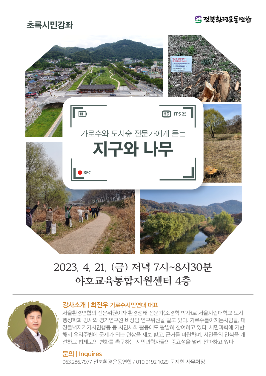 #최진우 #초록시민강좌 #지구와나무 #가로수 #나무의중요성 #도시숲
