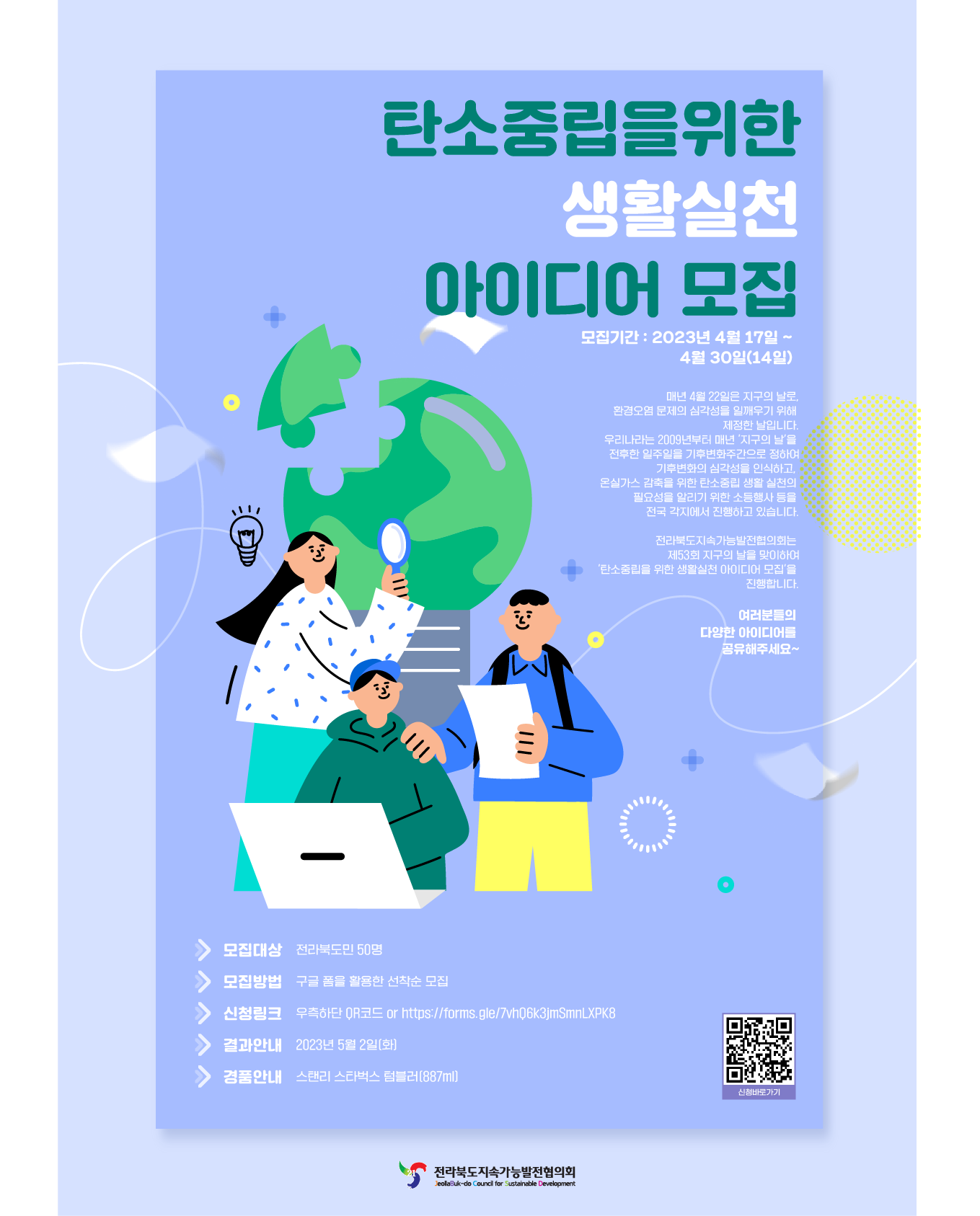 <전북지속협에서 진행하는  탄소중립을 위한 생활실천 아이디어 모집>