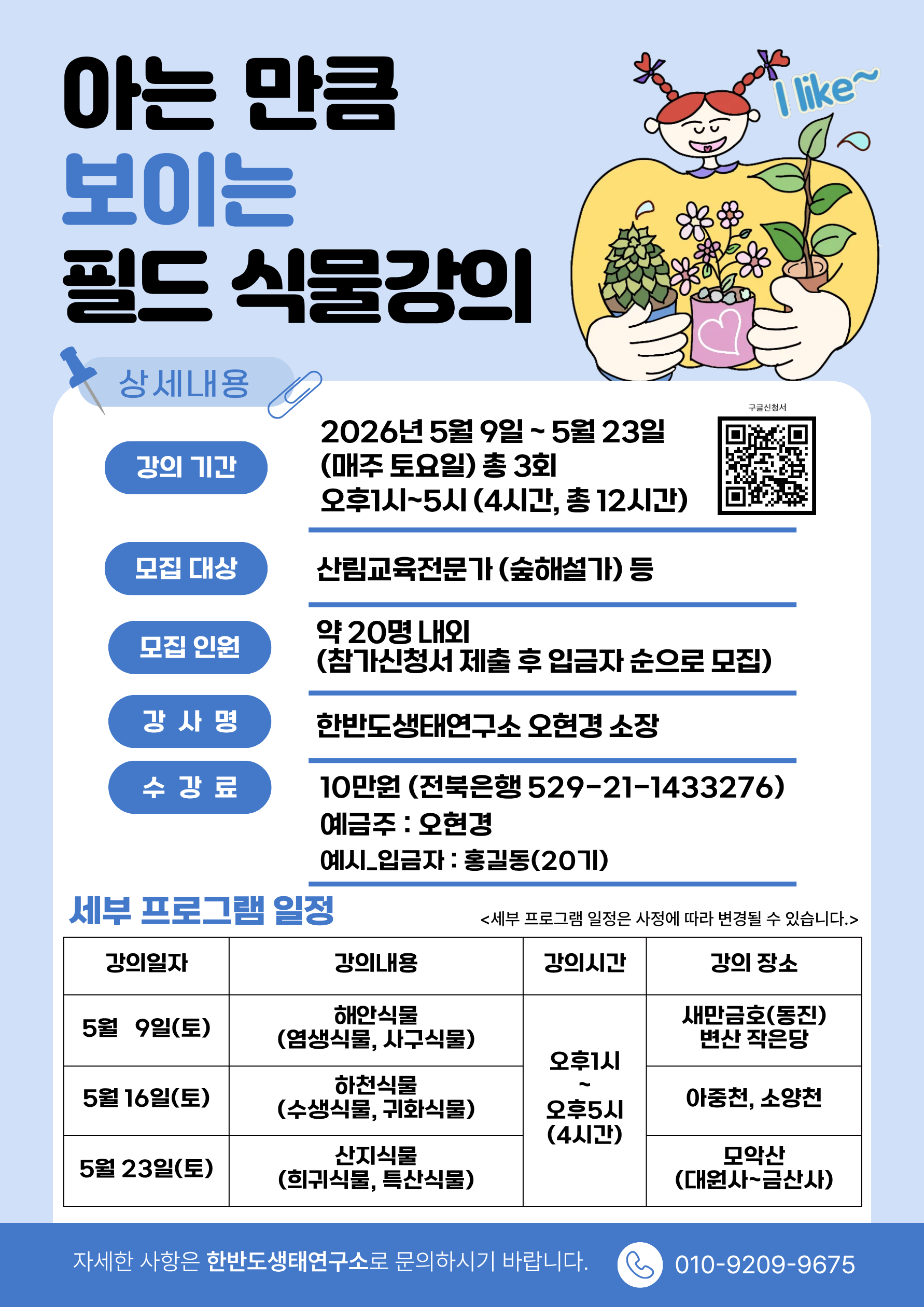 * 운영기간 : 2026년5월9일 ~ 5월 23일 (매주 토요일) 오후1시~5시(4시간) _ 총 3회
