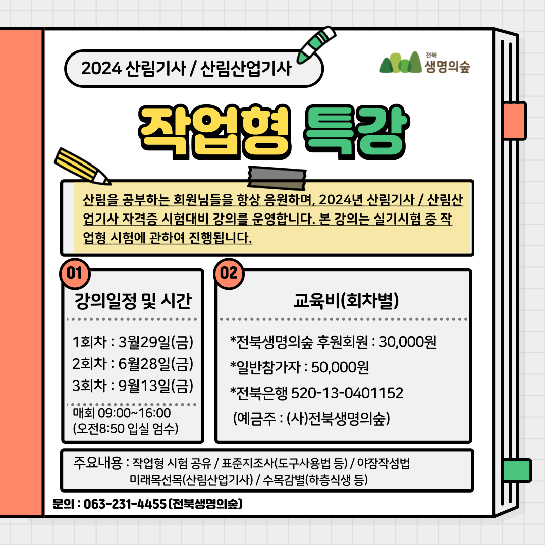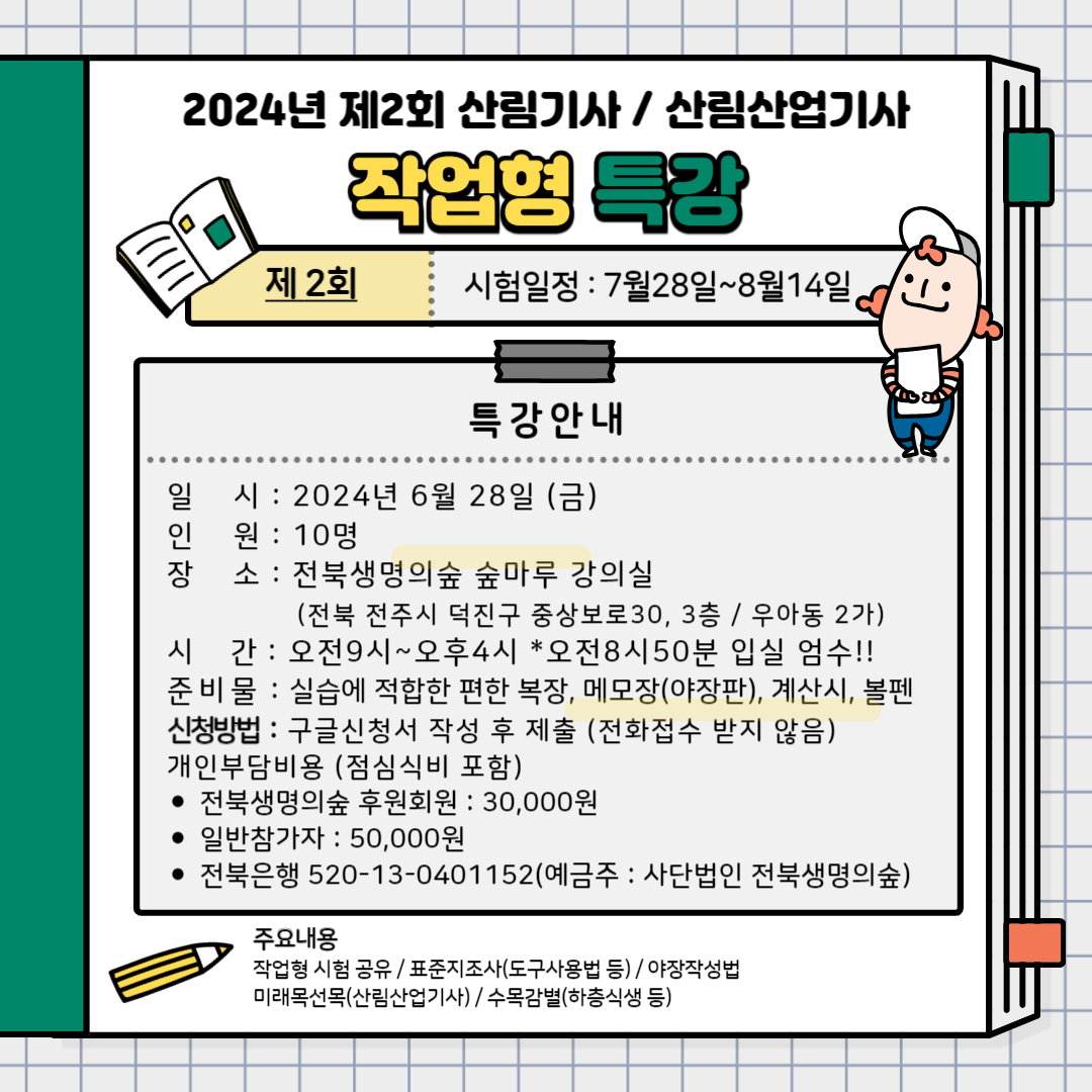 전북생명의숲에서 올해도 산림기사/산업기사 실기(작업형) 시험대비 강의를 진행합니다.