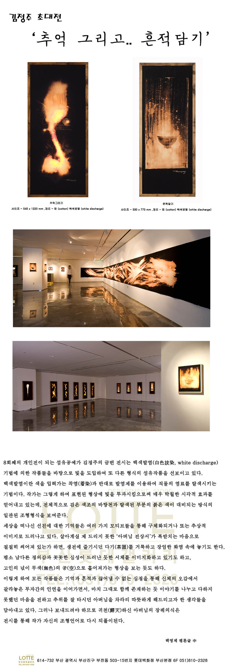 [부산]부산 서면롯데백화점 롯데갤러리 "김정주 초대전" 작성자즐-_ -|작성시간10.04.11|조회수146 목록 댓글 0 글자크기 작게가 글자크기 크게가 다음검색 현재 게시글 추가 기능 열기 북마크 공유하기 신고 센터로 신고 댓글 댓글 0 댓글쓰기 답글쓰기 댓글 리스트