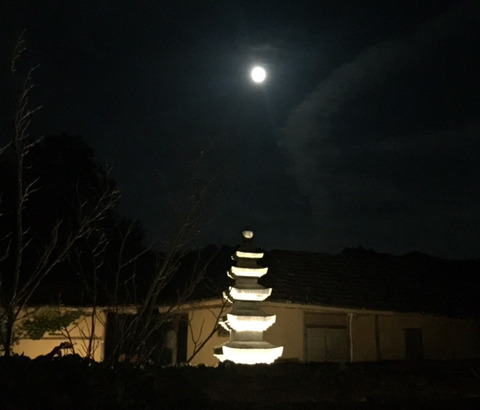 선재 월인재月印齋 평화탑平和塔위에 뜬 둥근달입니다.