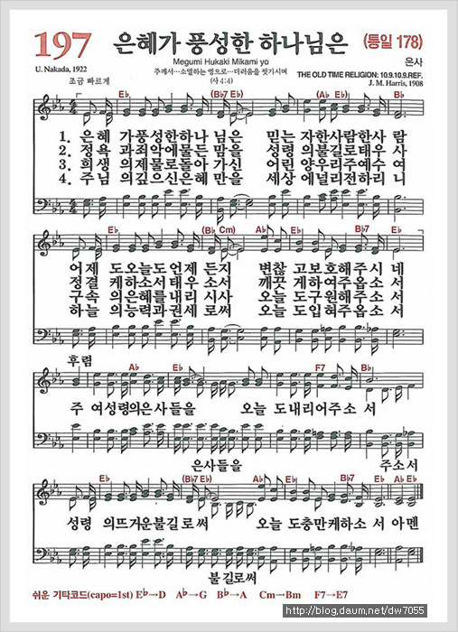 은혜가 풍성한 하나님은[찬양*악보*가사] - 새찬송가 197장, 통일찬송가 178장
