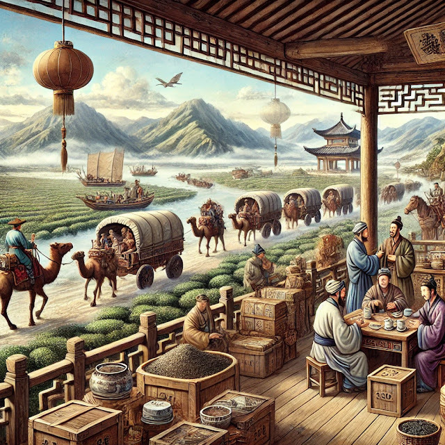 육우(陸羽, 733~804)는 『다경(茶經)』의 **팔출(八之)**에서 차가 어떻게 유통되고, 교역이 이루어지는지에 대해 기록하며, 당나라 시대 차 산업의 발전을 체계적으로 정리했습니다.