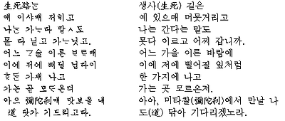 [내용] 격고(擊鼓)라는 시에,「죽으나 사나 만나나 헤어지나, 그대와 함께 하자 언약하였지. 그대의 손을 잡고, 그대와 함께 늙겠노라. 즉 전선에 출장한 병사가 고향에 돌아갈 날이 언젤런지...... 애마(愛馬)와도 사별하고 싸움터를 방황하면서 고향에 두고 온 아내를 생각하며 지은 노래다. 그러나,“아, 멀리 떠나 우리의 언약을 어기다니"로 끝맺은 병사의 슬픈 노래다 [원문]死生契闊에 與子成說호라, 執子之手하여 與子偕老라 호라
