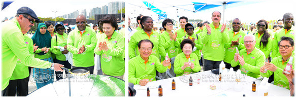 기후난민돕기 새생명걷기대회 3부 체험마당시간. 내빈들을 안내한 장길자 회장은