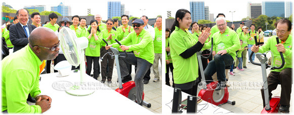 내빈들이 가장 즐거워한 체험은 인간동력 자전거, 튀니지 대사가 힘차게 자전거 페달을