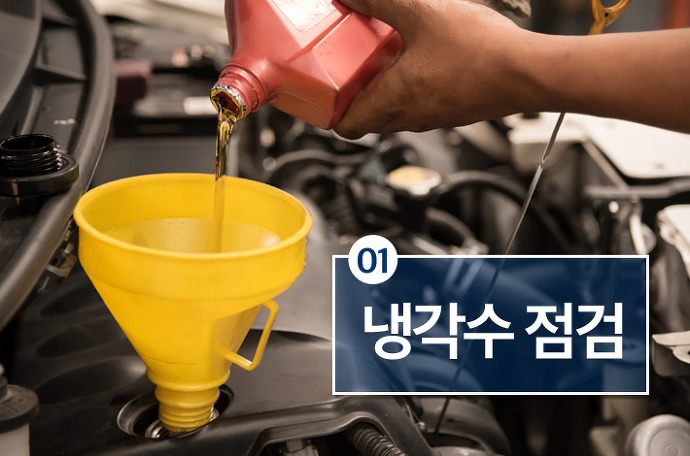 여름철 자동차 관리 중 가장 중요한 냉각수 점검! 여름철 더욱 쉽게 가열되는 엔진을 식혀주는 냉각수의 역할은 아주 크죠. 냉각수 점검은 반드시 차의 시동을 끄고, 엔진이 완전히 식은 후에 진행해야 합니다. 엔진이 아직 뜨거운 상태에서 냉각수 보조 탱크 뚜껑을 열면, 압력에 의해 냉각수가 튀어 나와 화상을 입을 수 있으니 주의해주세요!