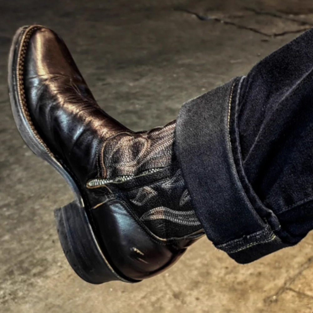 자수가 포인트인 웨스턴 카우보이 부츠입니다.