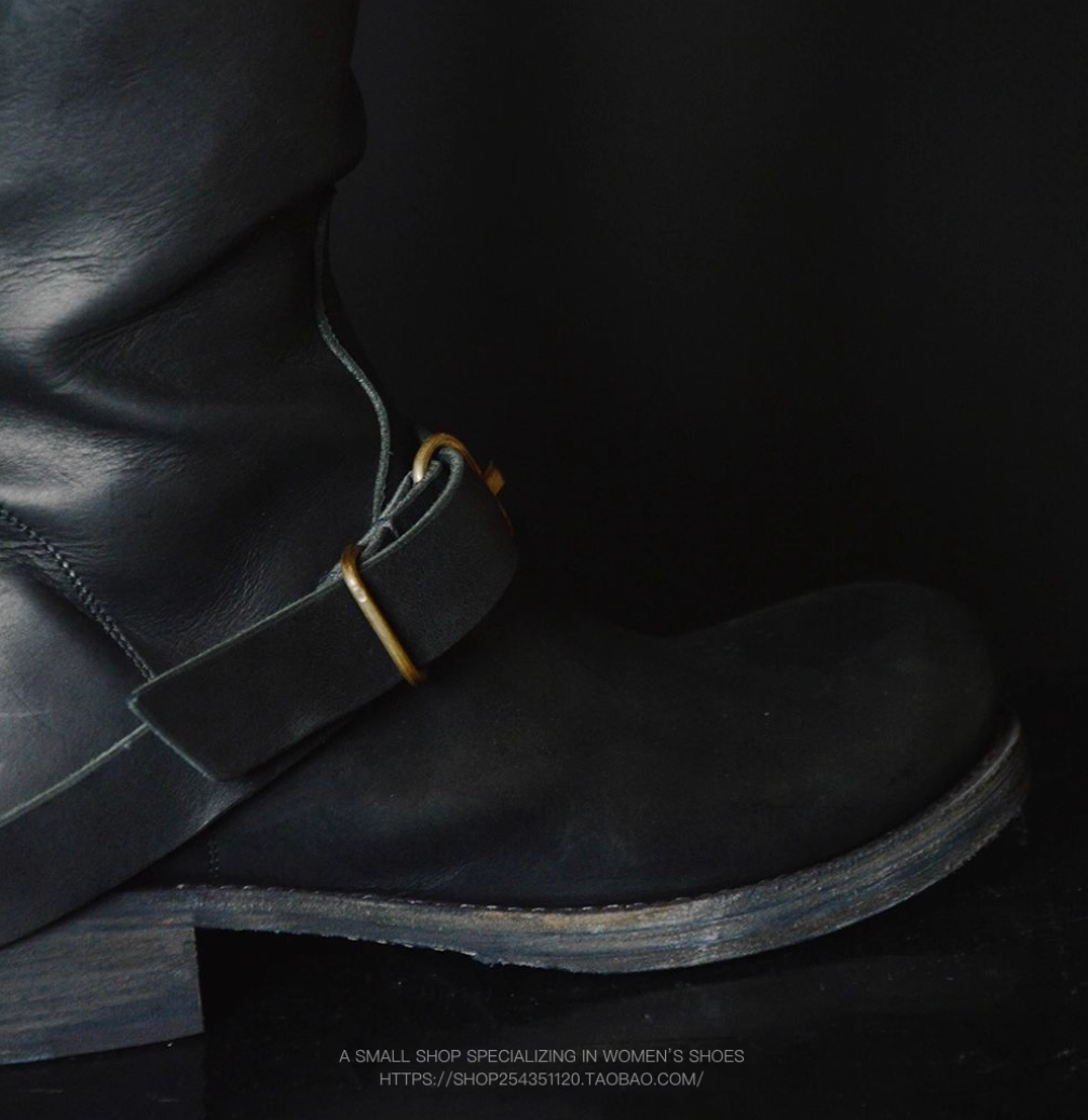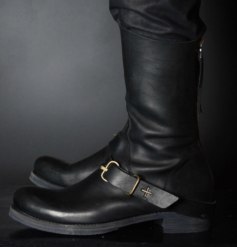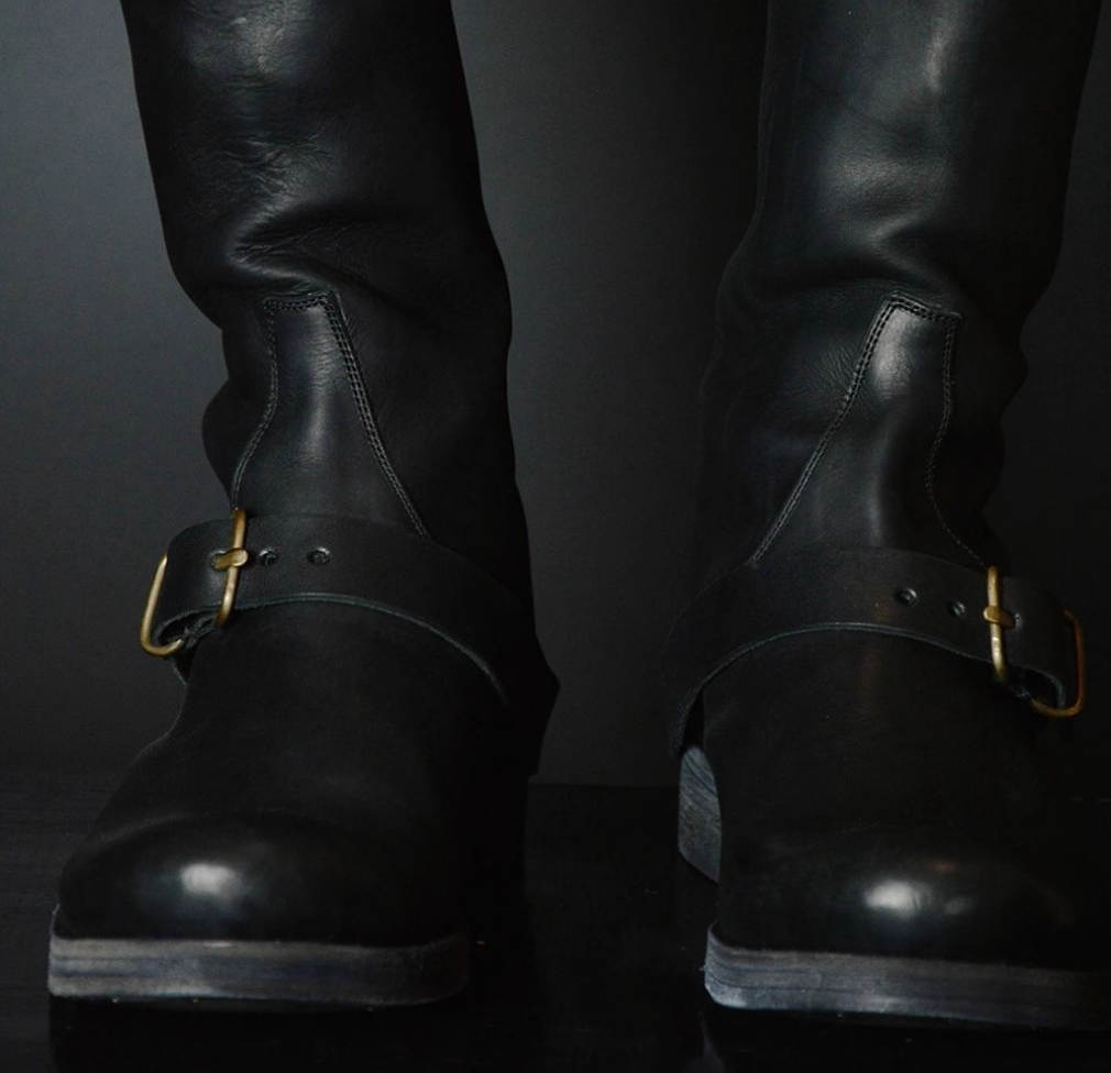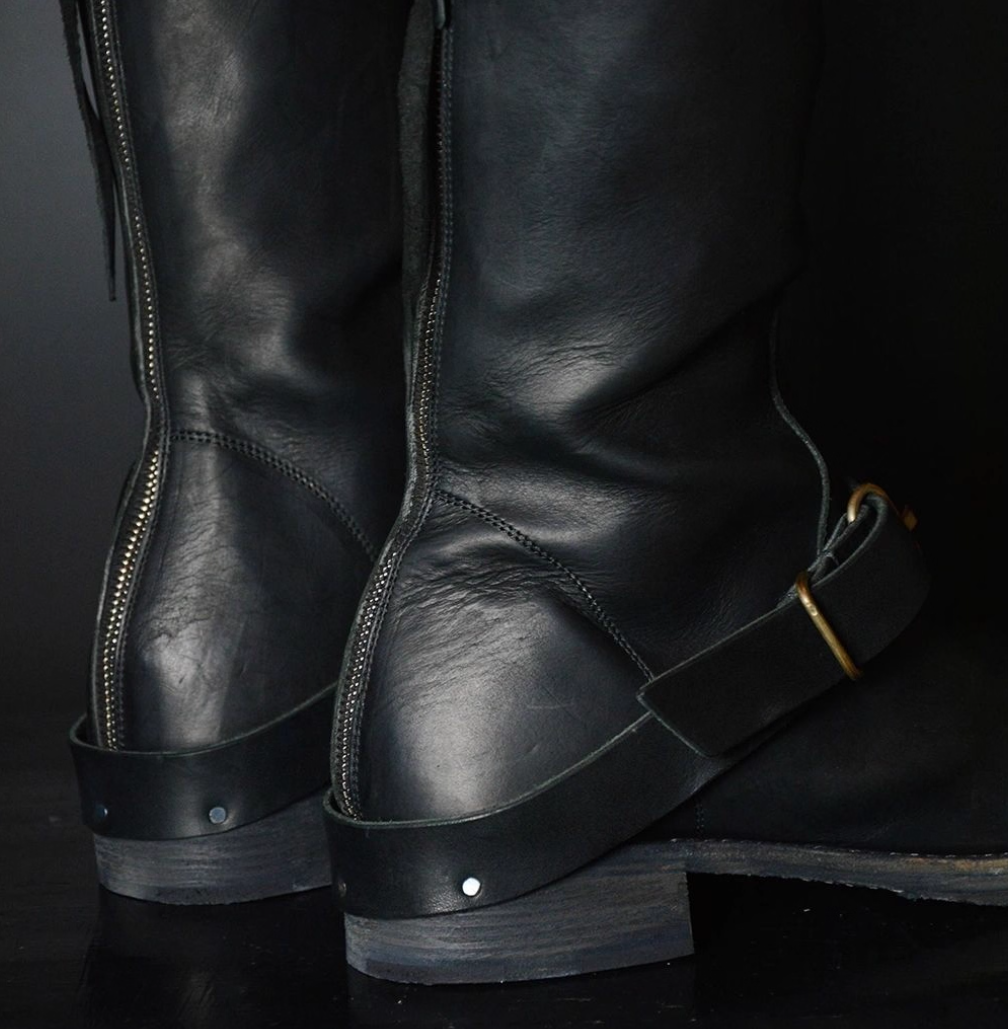 가죽 벨트가 포인트인 말가죽 소재의 수제 말가죽 부츠