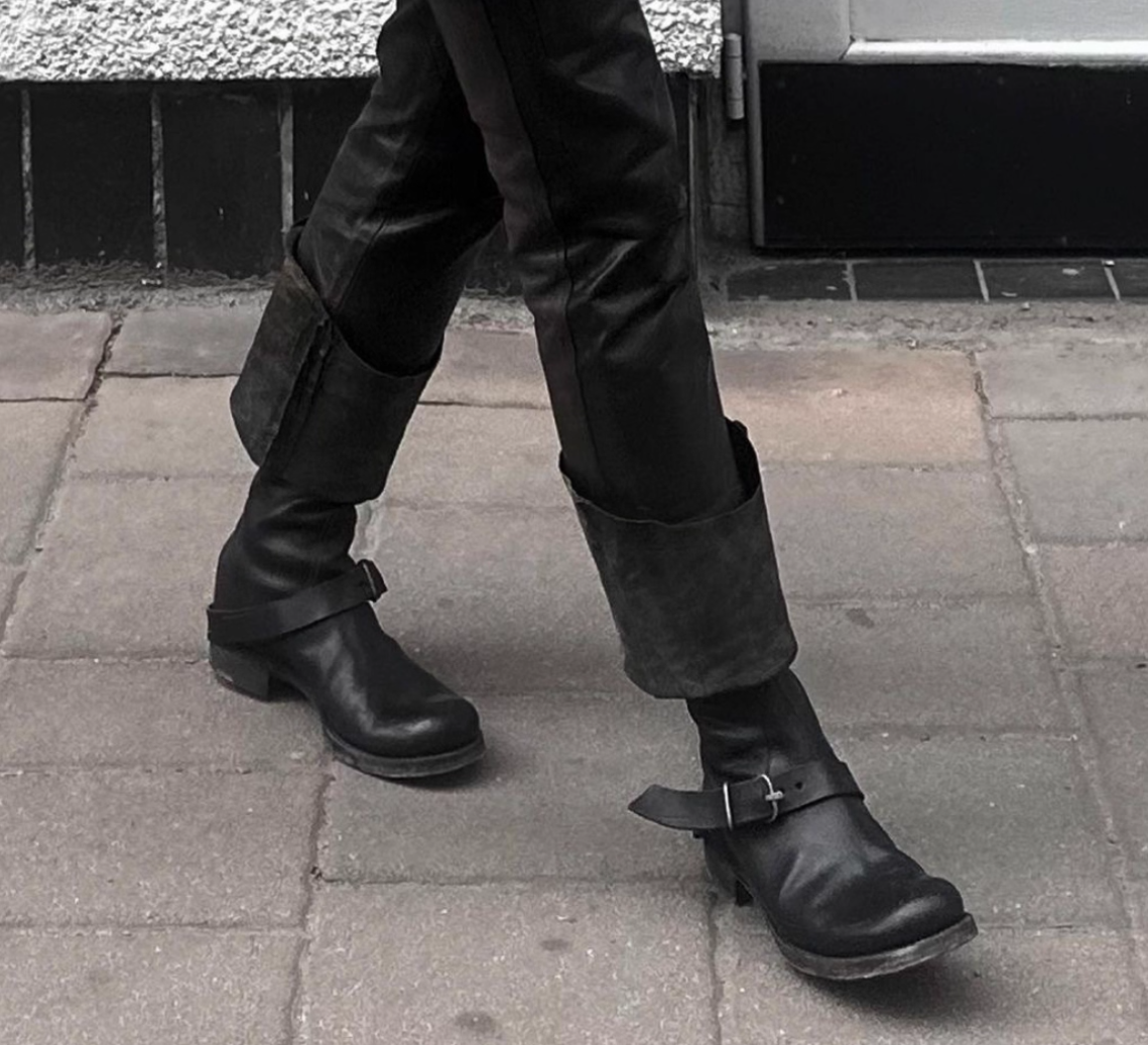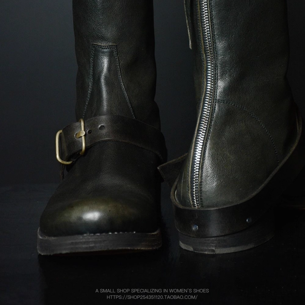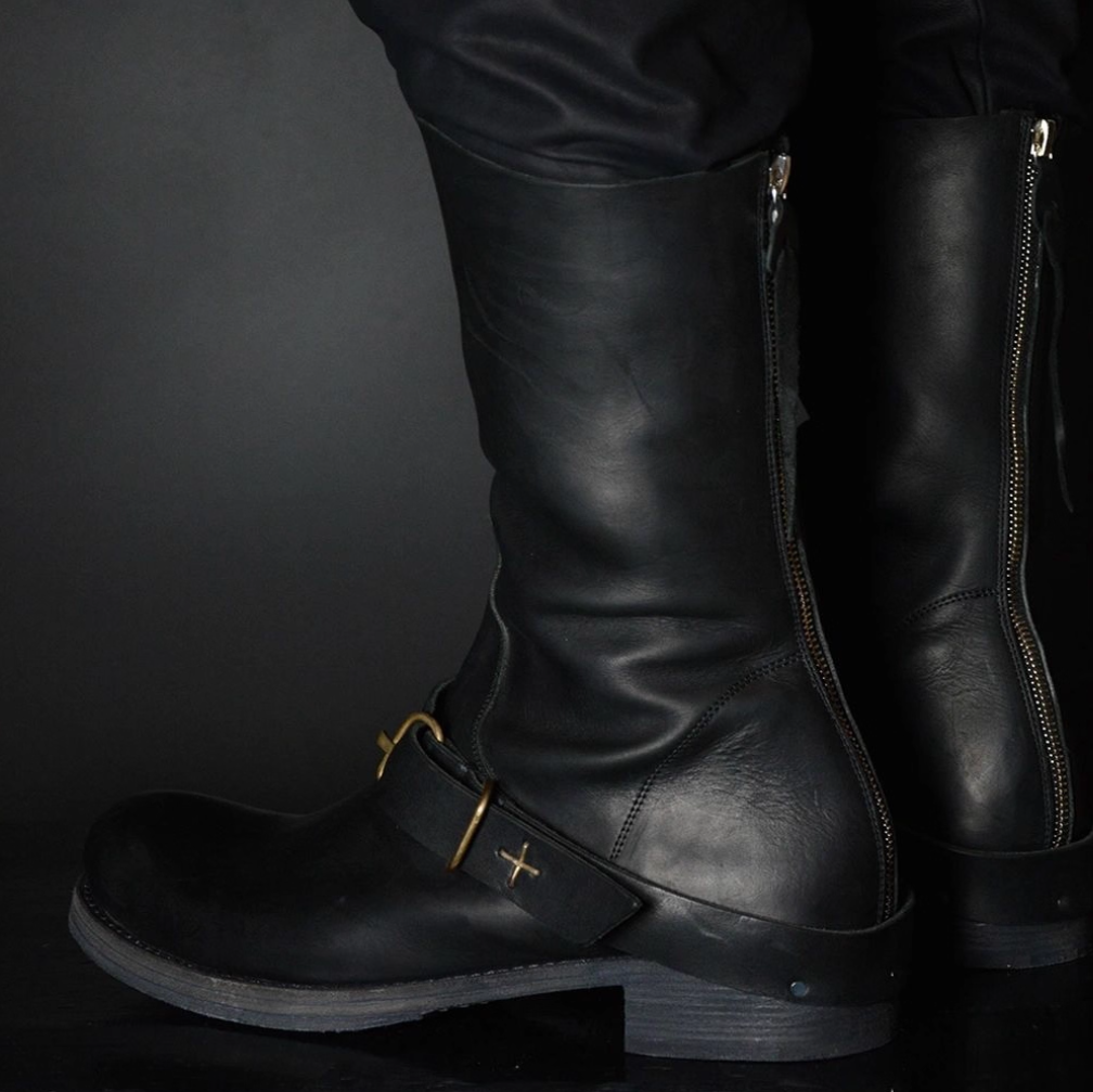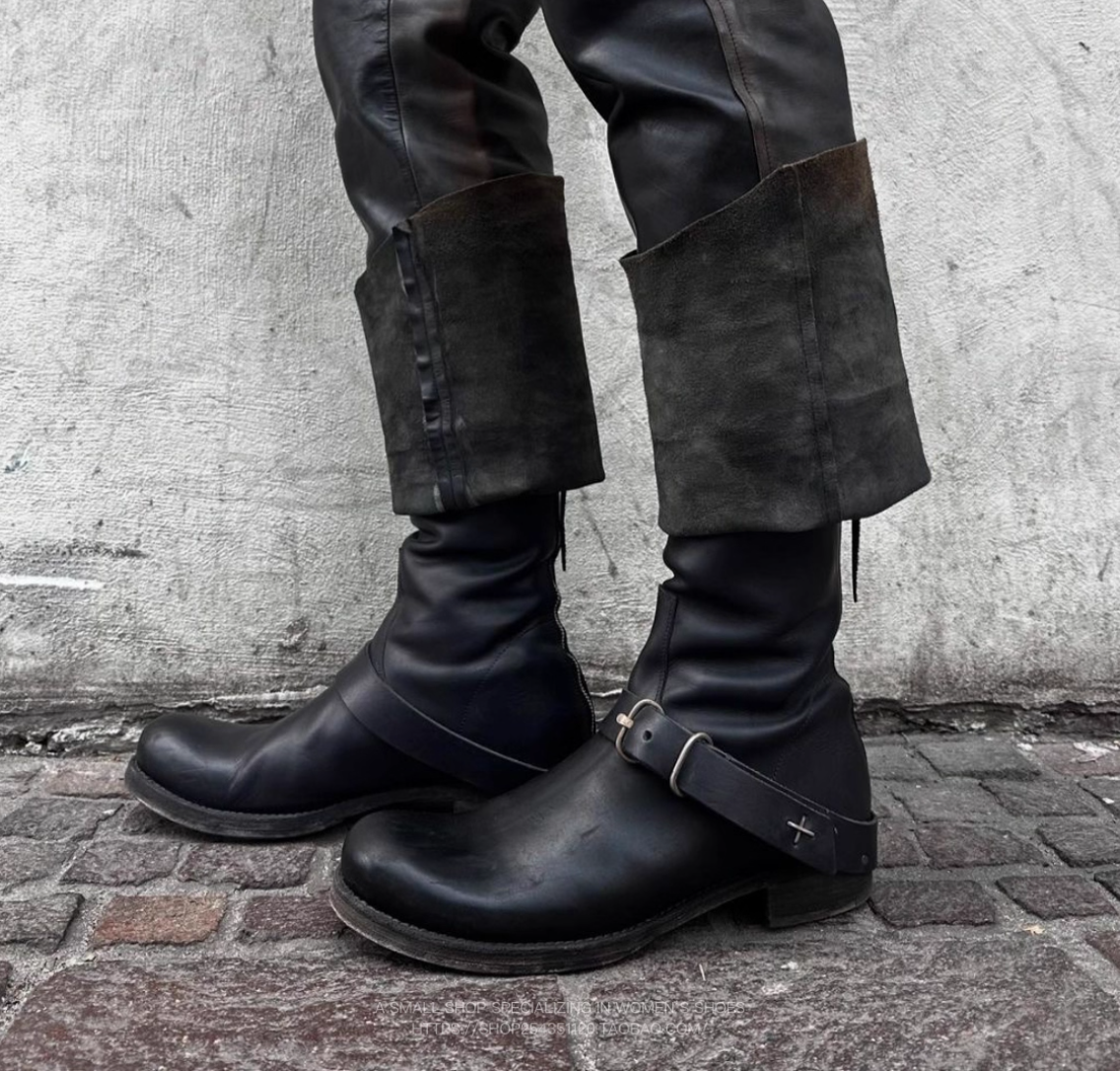 가죽 벨트가 포인트인 말가죽 소재의 수제 말가죽 부츠