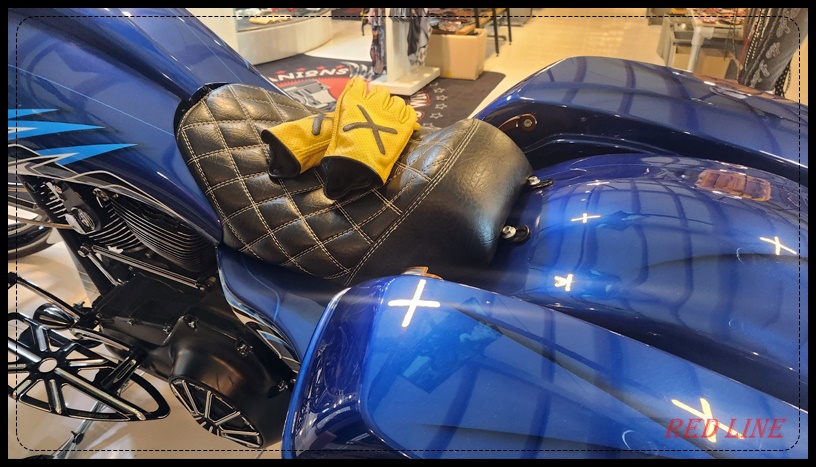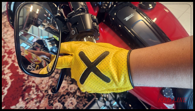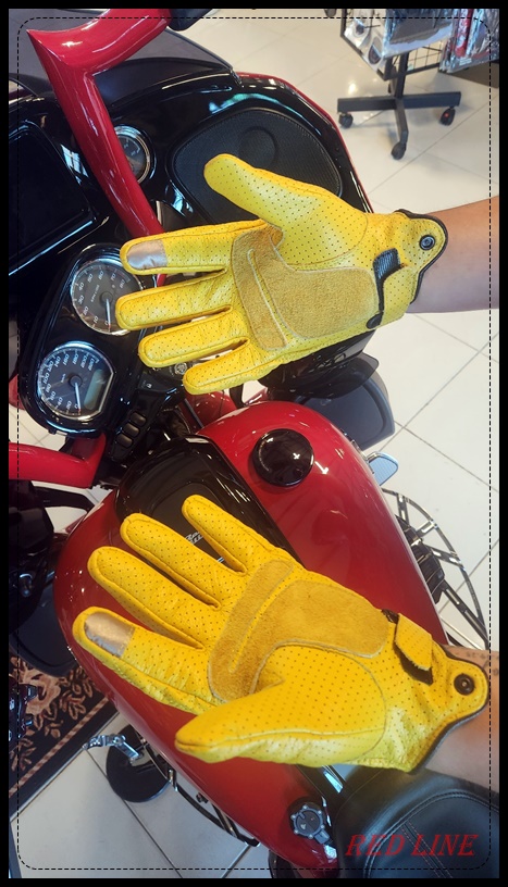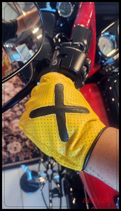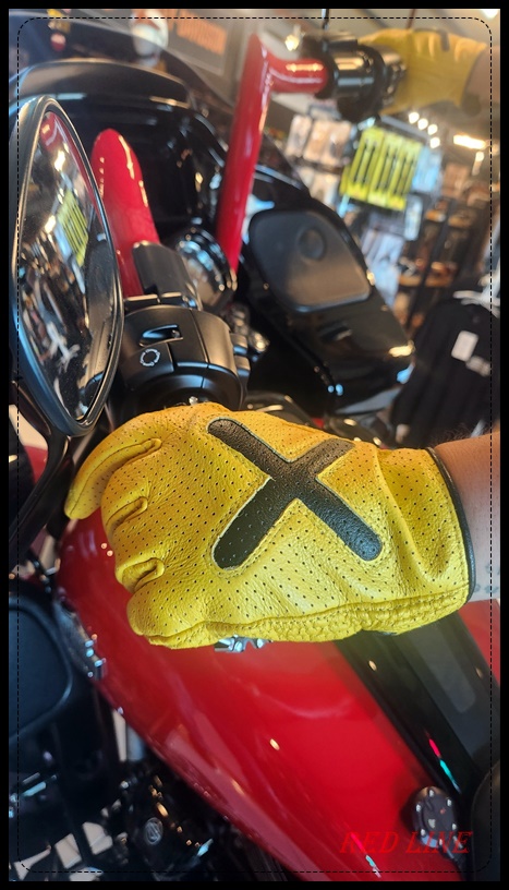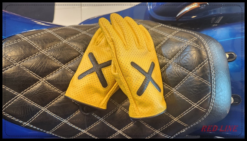 레트로한 컬러의 타공 글러브입니다. 가운데 X자 누빔이 포인트입니다.