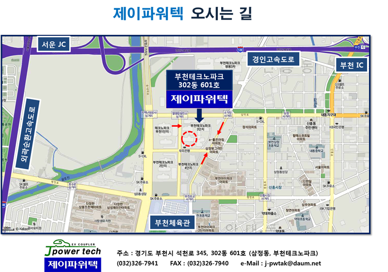 * 송내IC에서 우회전 > 송내지하차도 진입 > 3km직진후 우회전 > 부천테크노파크