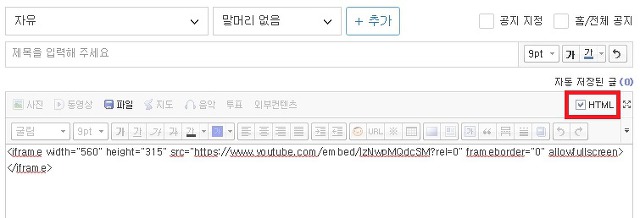이렇게 되어있는 걸 볼 수 있어. 여기서 width="560" height="315" ← 이 부분은 영상 크기인데