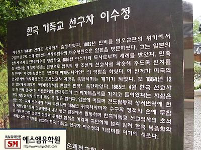 아울러 한국 기독교 선구자 이수정을 기리는 기념비도 서 있다.