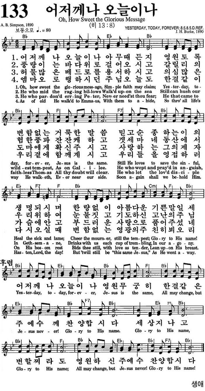 [스크랩] (♬在) (영어 찬송) 133장, 어저께나 오늘이나, Oh, How Sweet the Glorious Message (♬在)