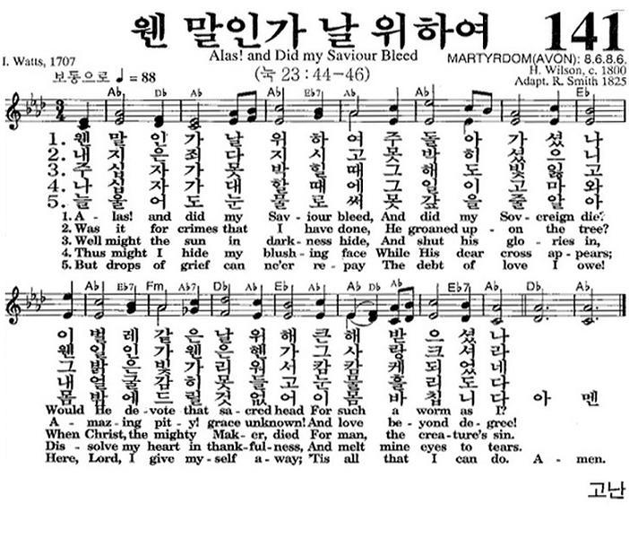 [스크랩] (♬在) (영어 찬송) 141장, 웬말인가 날 위하여, Alas! and Did my Saviour Bleed (♬在)